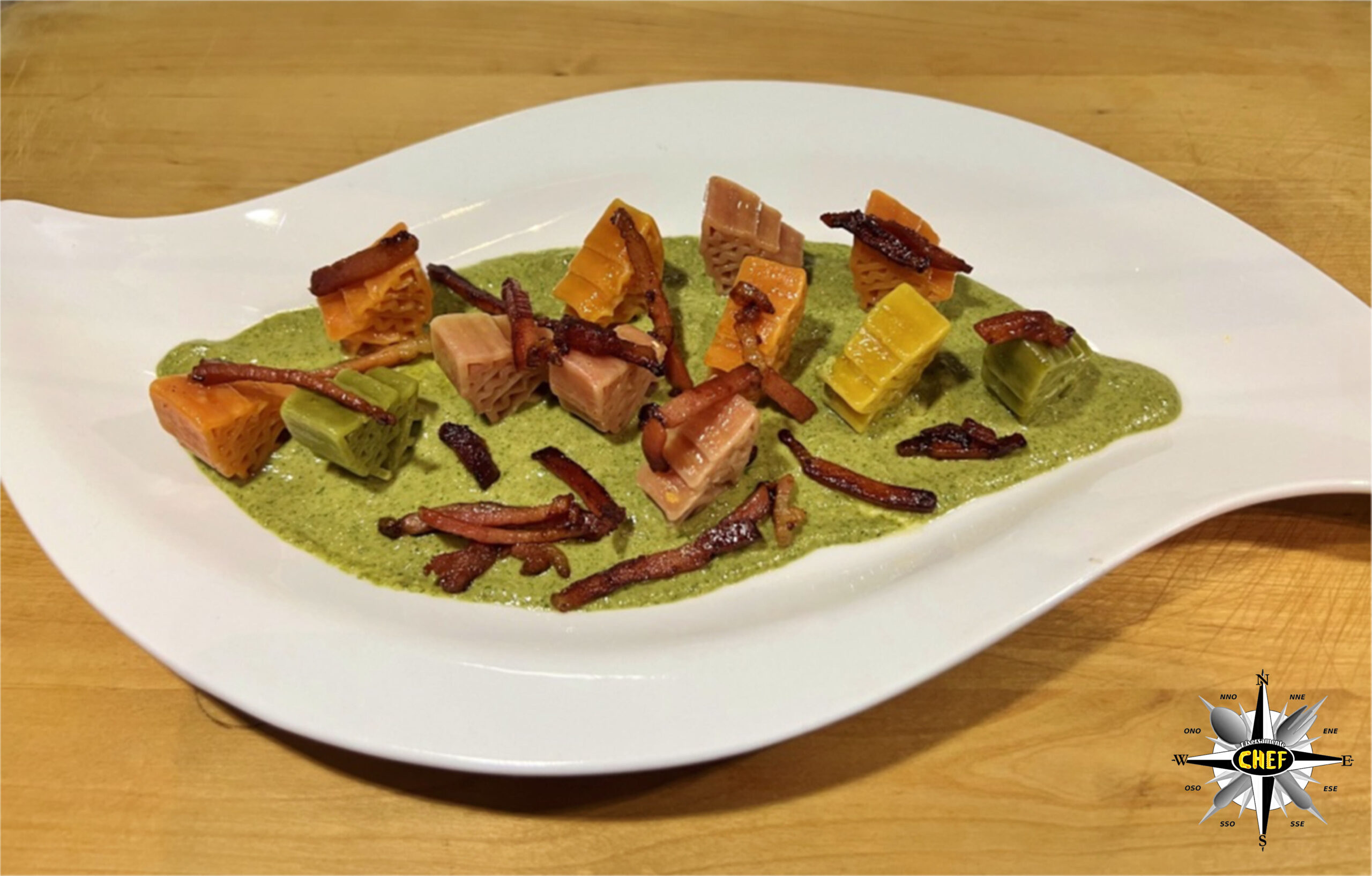 La nuova ricetta di Chef Rosato è realizzata con un pesto di capperi abbinato al Culatello di Zibello, due eccellenze della gastronomia italiana.