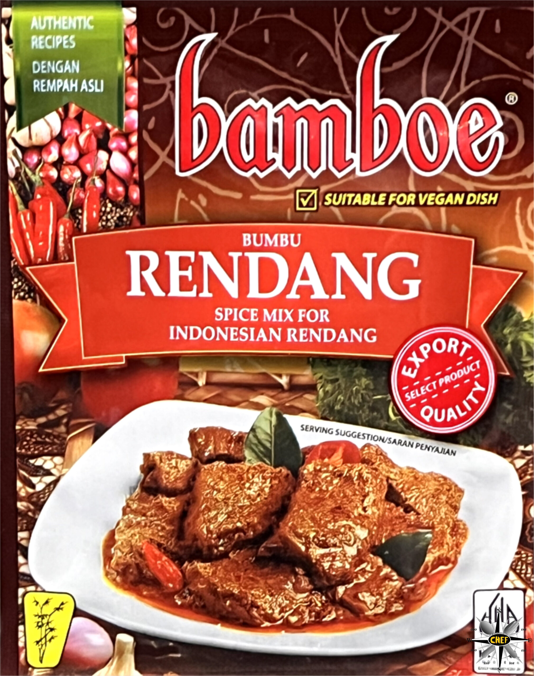 Quest’ultimo viene fornito proprio dal Bamboe Bumbu Rendang indonesiano, nella cui composizione entrano a far parte coriandolo, pepe, citronella, zenzero, curcuma, galangal, peperoncino, aglio e scalogno.