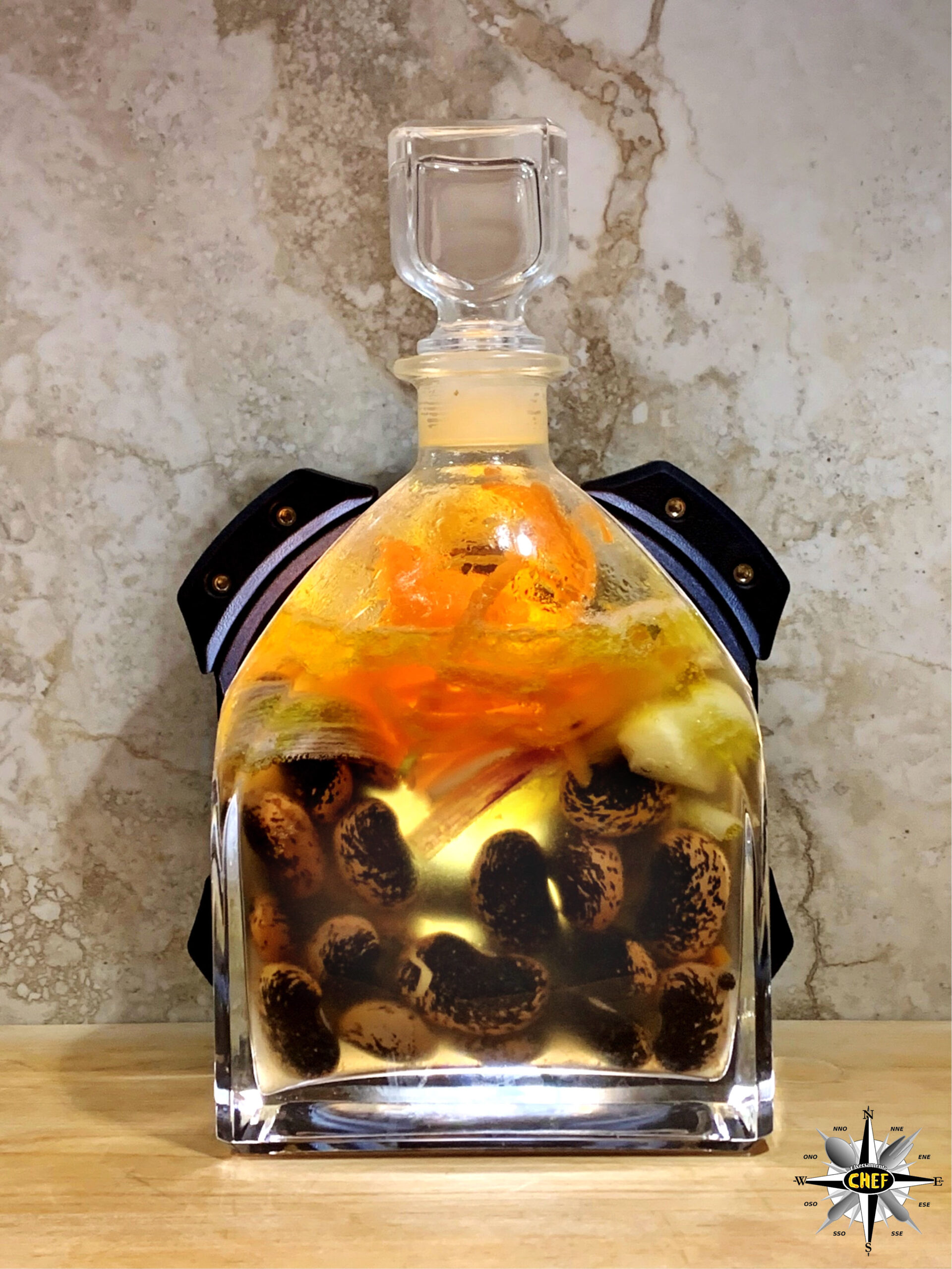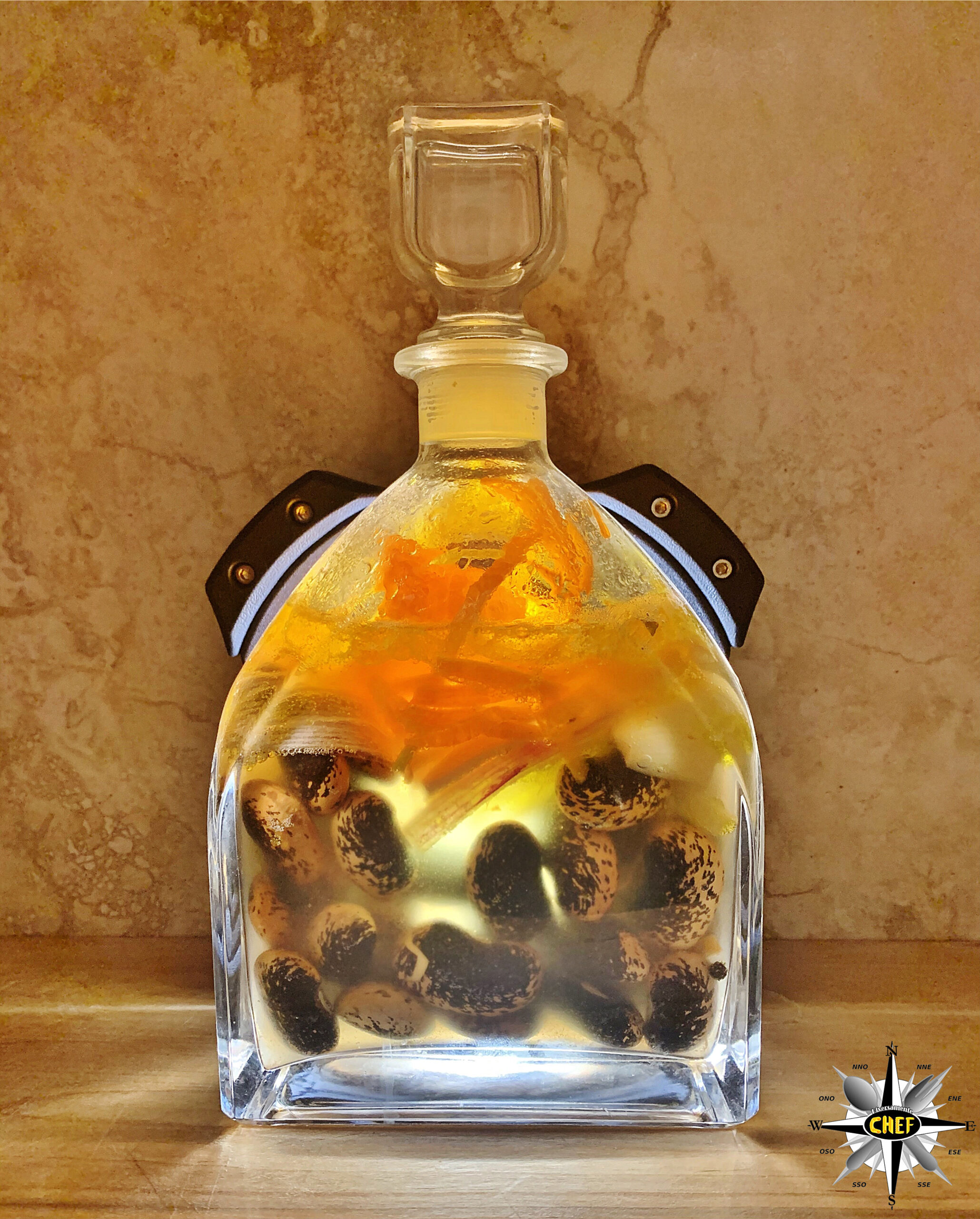 Nella ricetta dei “Bottled Beans alle 5 spezie cinesi (Fagioli al fiasco gourmet style)” proponiamo una inedita versione gourmet dei classici fagioli al fiasco (sostituito da un elegante bottiglia da liquore), realizzata utilizzando legumi diversi da quelli tradizionali (i gustosi fagioli giganti dell’Umbria, conosciuti come “Diavoli di Castelluccio di Norcia”, invece dei classici cannellini) e aggiungendo la pregiata miscela delle “5 spezie cinesi”.