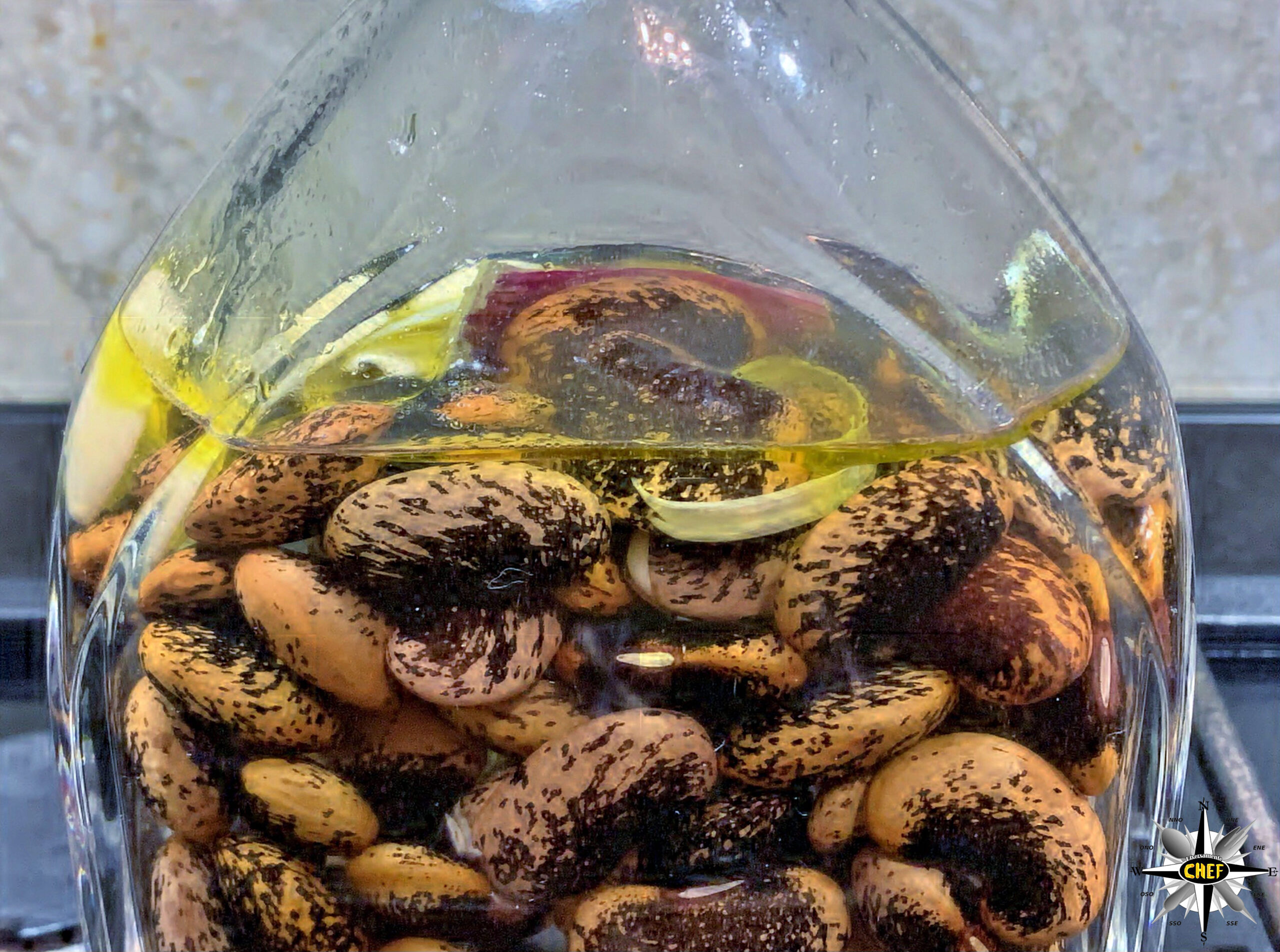 Questi fagioli richiedono almeno due giorni di ammollo (36/48 h) in una pentola con circa sei litri di acqua; il tempo di preparazione della ricetta esclude ovviamente le ore in ammollo dei legumi.