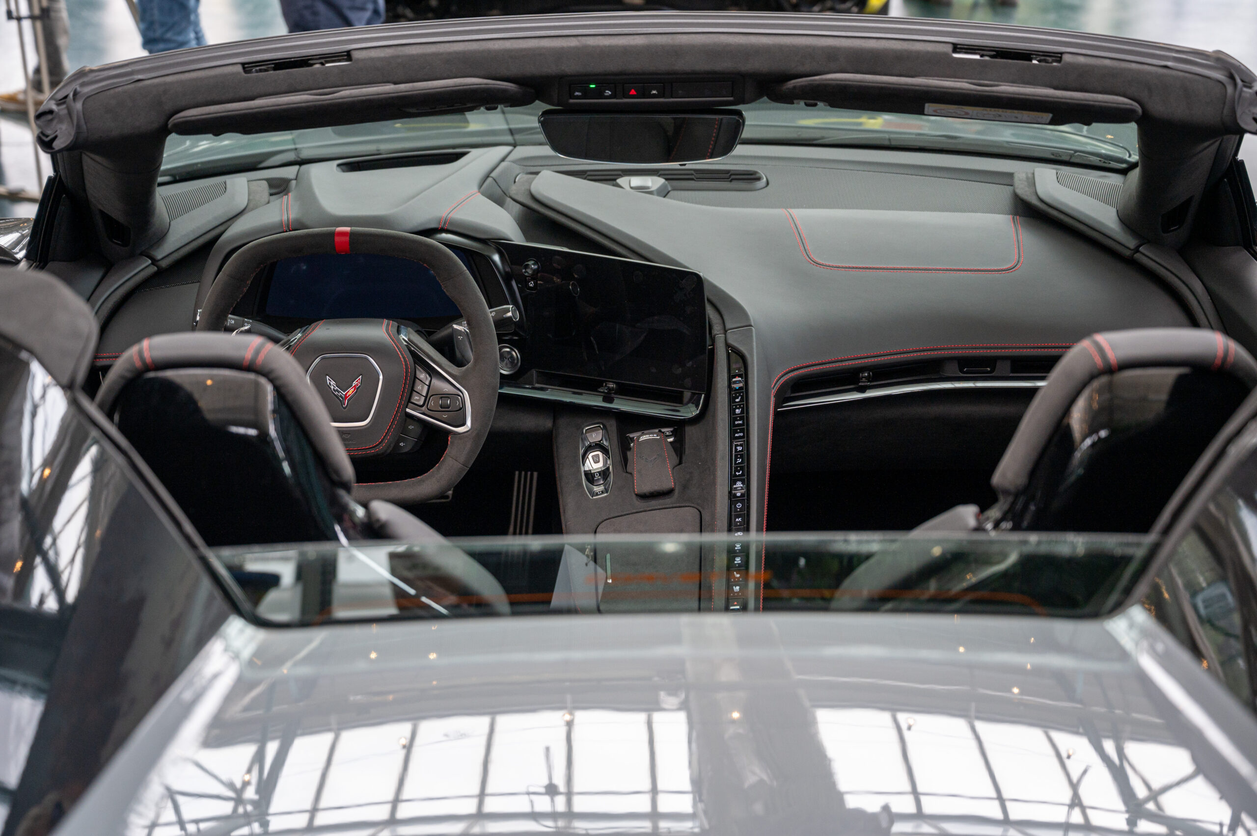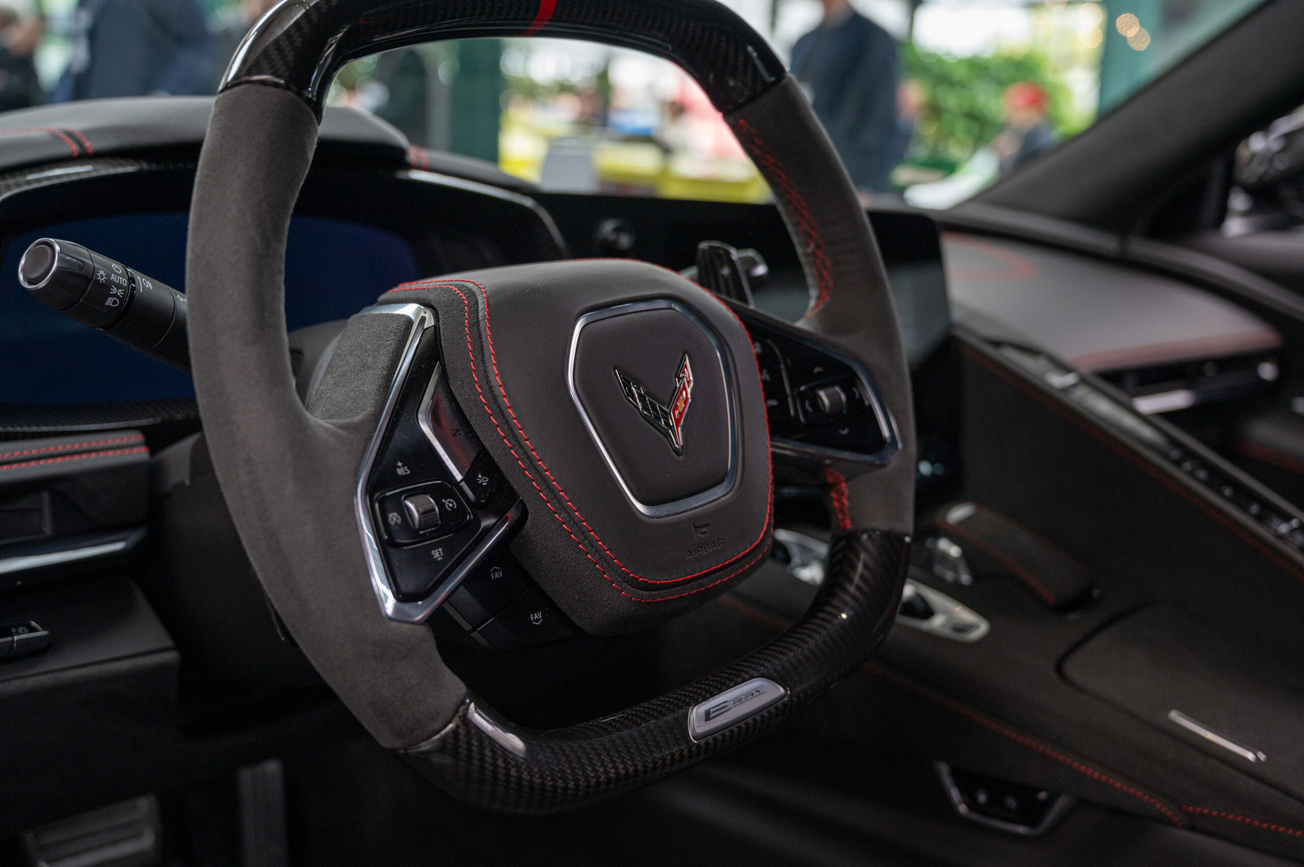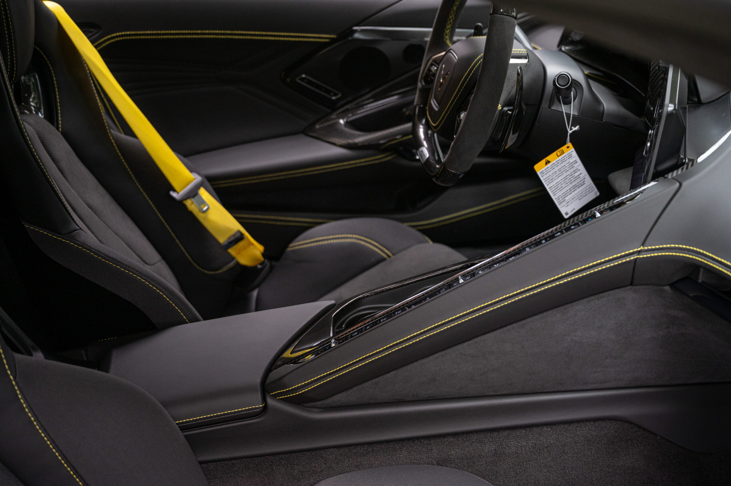 Dentro la Corvette E-Ray, l’abitacolo è avvolgente e futuristico, con materiali pregiati e finiture curate nel dettaglio, dove ogni elemento è studiato per offrire il massimo comfort senza rinunciare all’anima sportiva del modello. Dalla pelle premium ai dettagli in fibra di carbonio, tutto richiama un’esperienza di guida esclusiva.