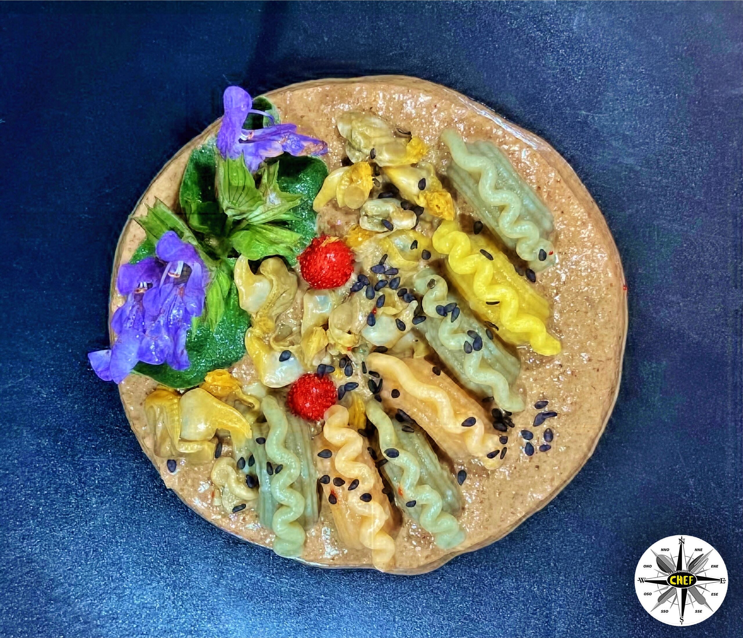 Queste caratteristiche ne fanno un primo ideale sia per le specialità più note della cucina tradizionale, senza troppi ingredienti, sia per alcune raffinate elaborazioni gourmet allineate con le più attuali tendenze del food, grazie soprattutto alla sua straordinaria capacità di catturare e trattenere i condimenti, sia lungo i bordi esterni che tra le creste o all’interno delle parti cave. Entrate a far parte integrante di molte ricette della tradizione siciliana (“pasta alla Norma”, “pasta ncasciata”, “pasta ca’ muddica atturrata”, “pasta con il pesto alla trapanese”, “pasta con i tenerumi”, “pasta con le sarde”, “busiate al pesto di capperi”, etc), le creste di gallo rappresentano un formato di pasta che si presta benissimo alla realizzazione di ricette creative, specialmente se si utilizza la pasta fresca (varietà più difficile da trovare) nella quale alle due farine sono aggiunte anche le uova. Per la nostra ricetta con le creste di gallo abbiamo scelto come condimento un pesto a base di fiori di salvia e i gustosi berberechos, racchiusi nella caratteristica conchiglia rigata; questi pregiati molluschi sono pescati in gran quantità nelle sabbie delle coste galiziane dove, una volta cotti e conservati in acqua e sale, vengono esportati in tutto il mondo.