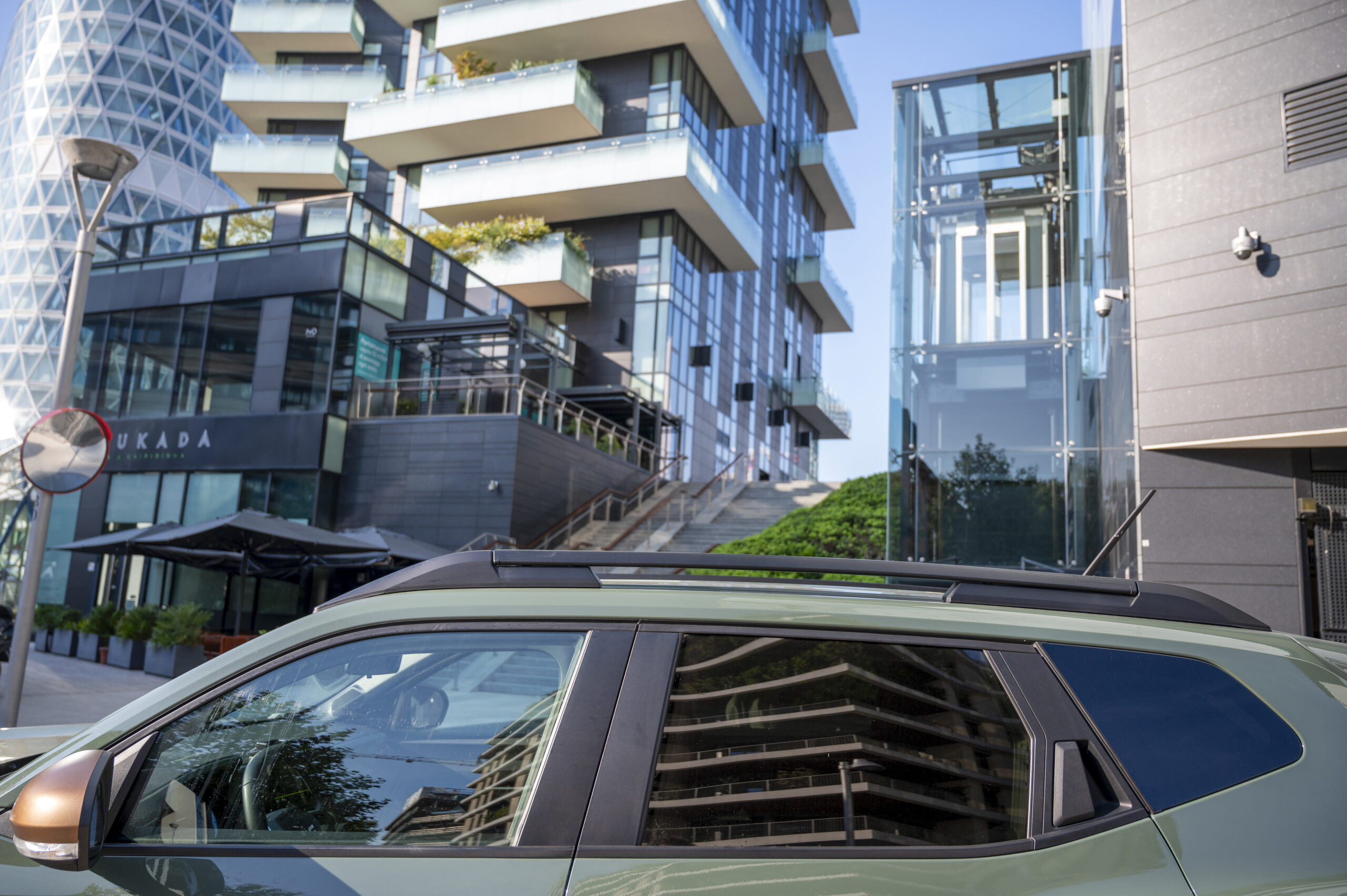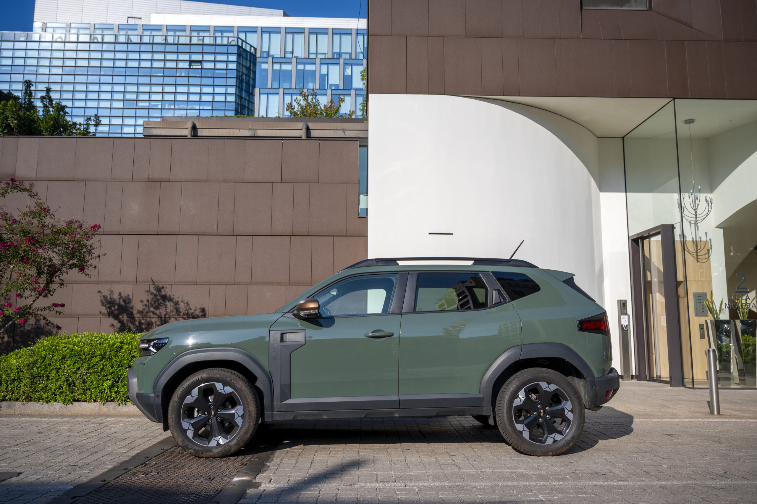 Linee tese, passaruota protetti, dettagli funzionali. Non cerca effetti speciali: paraurti robusti, protezioni laterali, barre sul tetto, tutto parla la lingua di chi l’auto la usa davvero. Le nostre foto lo raccontano bene: la Duster sta a suo agio tanto tra i palazzi del centro quanto su un percorso bianco off-road