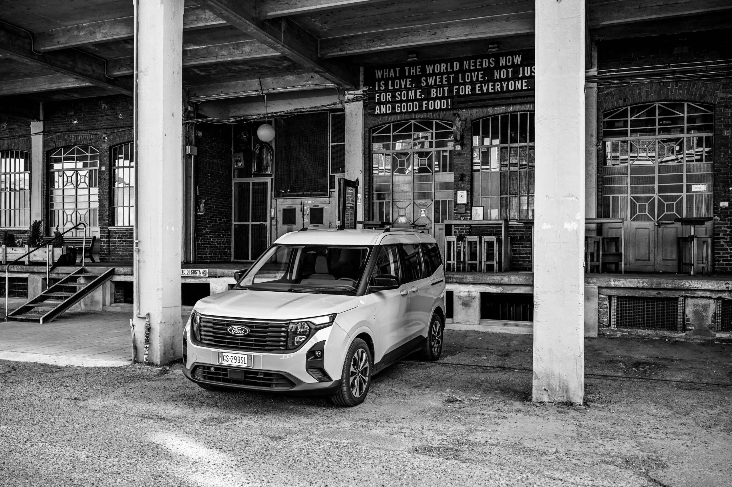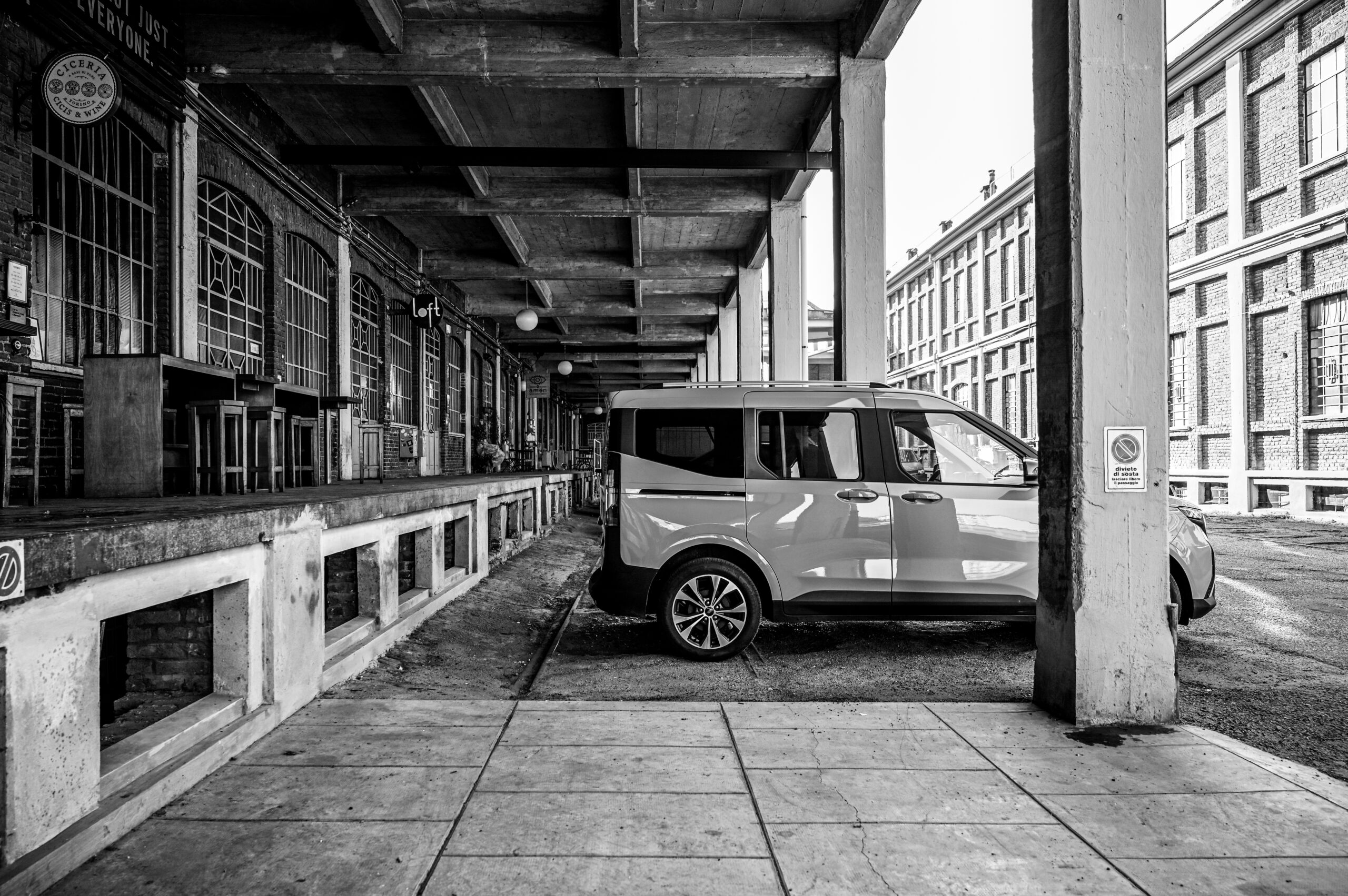 Nascosto tra i mattoni rossi e le strutture in ferro dei Docks Dora, il Ford Tourneo si integra perfettamente in questo scenario dal fascino post-industriale. Un contrasto che racconta l’evoluzione della mobilità: da un passato fatto di binari e merci a un presente dinamico, dove versatilità e tecnologia ridefiniscono lo spazio urbano.