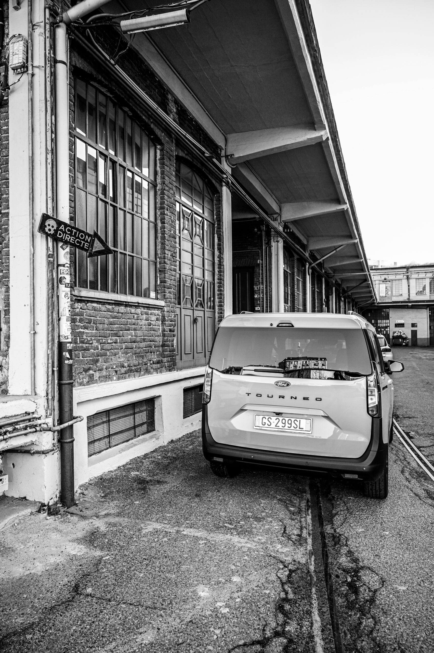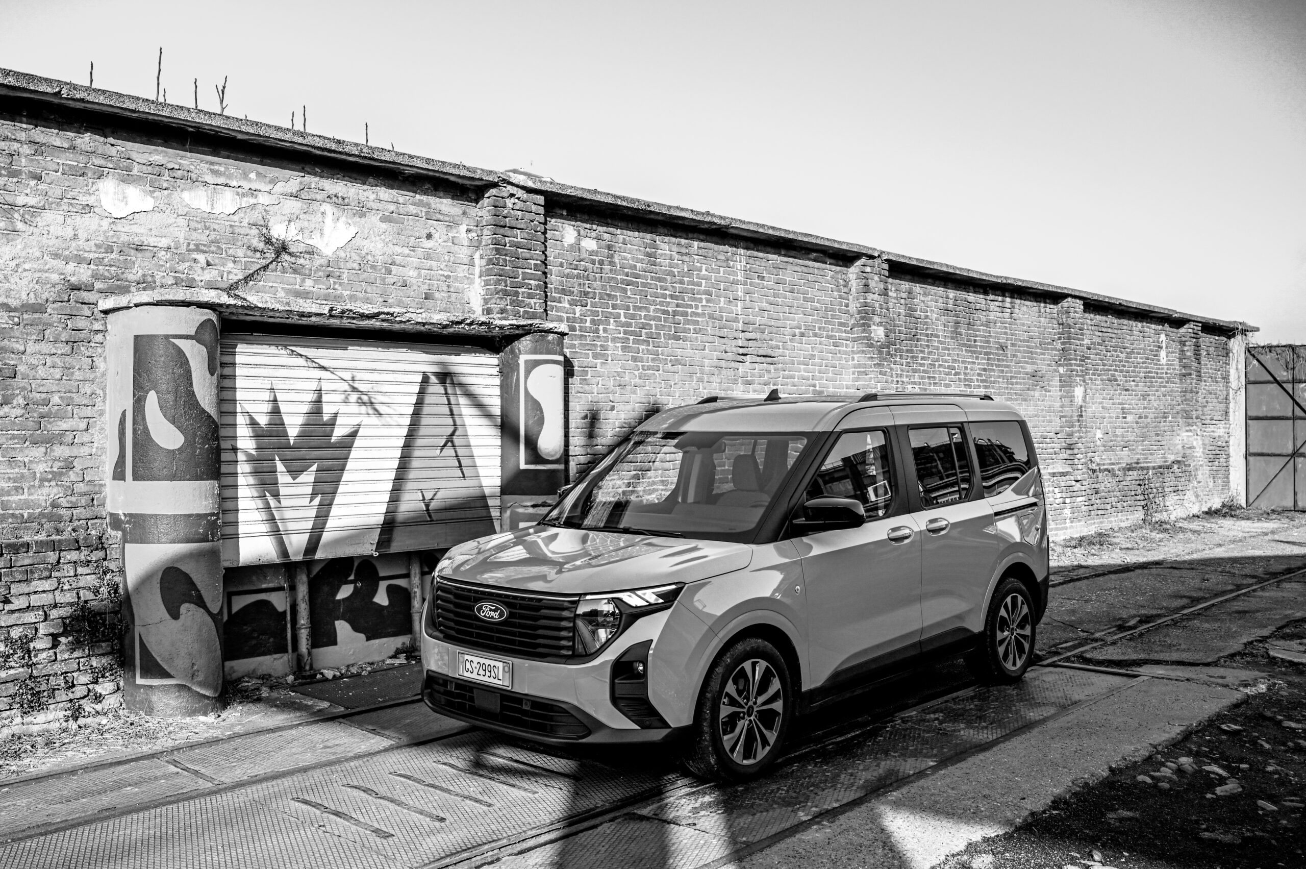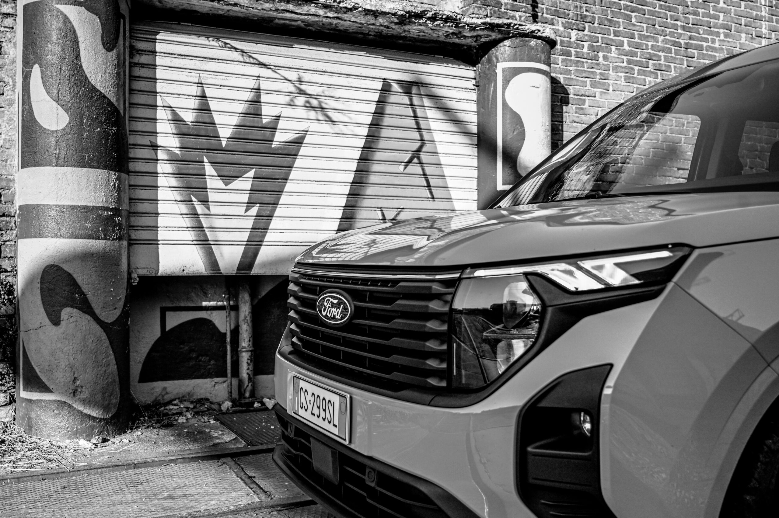 Le linee decise del Tourneo si specchiano nelle geometrie rigide delle finestre a griglia e nelle travi d’acciaio che un tempo sorreggevano la fatica del lavoro. Qui, tra dettagli architettonici carichi di storia, il Tourneo rivela la sua essenza: robusto, funzionale, pronto a interpretare le esigenze moderne senza rinunciare a un carattere distintivo.