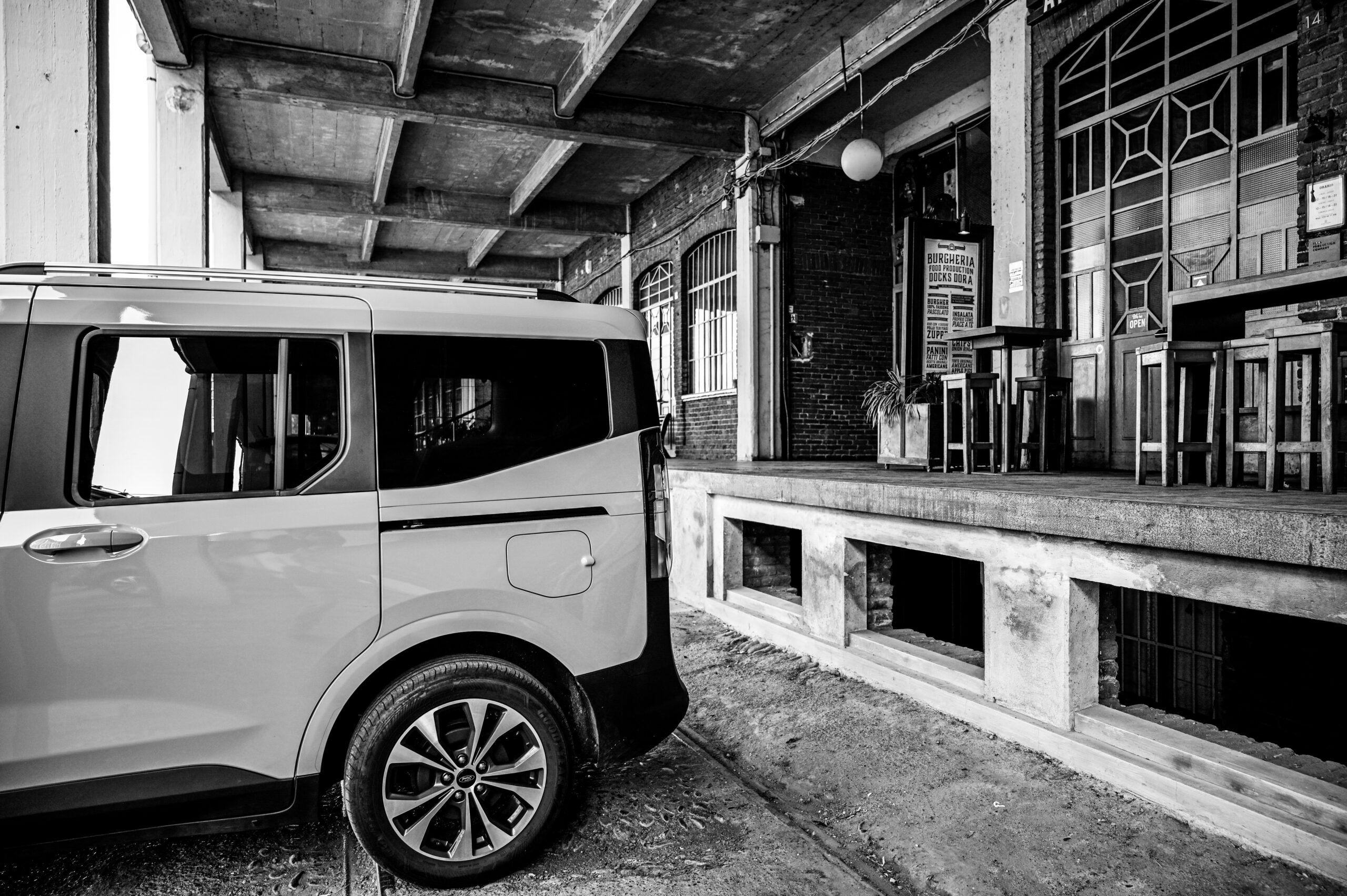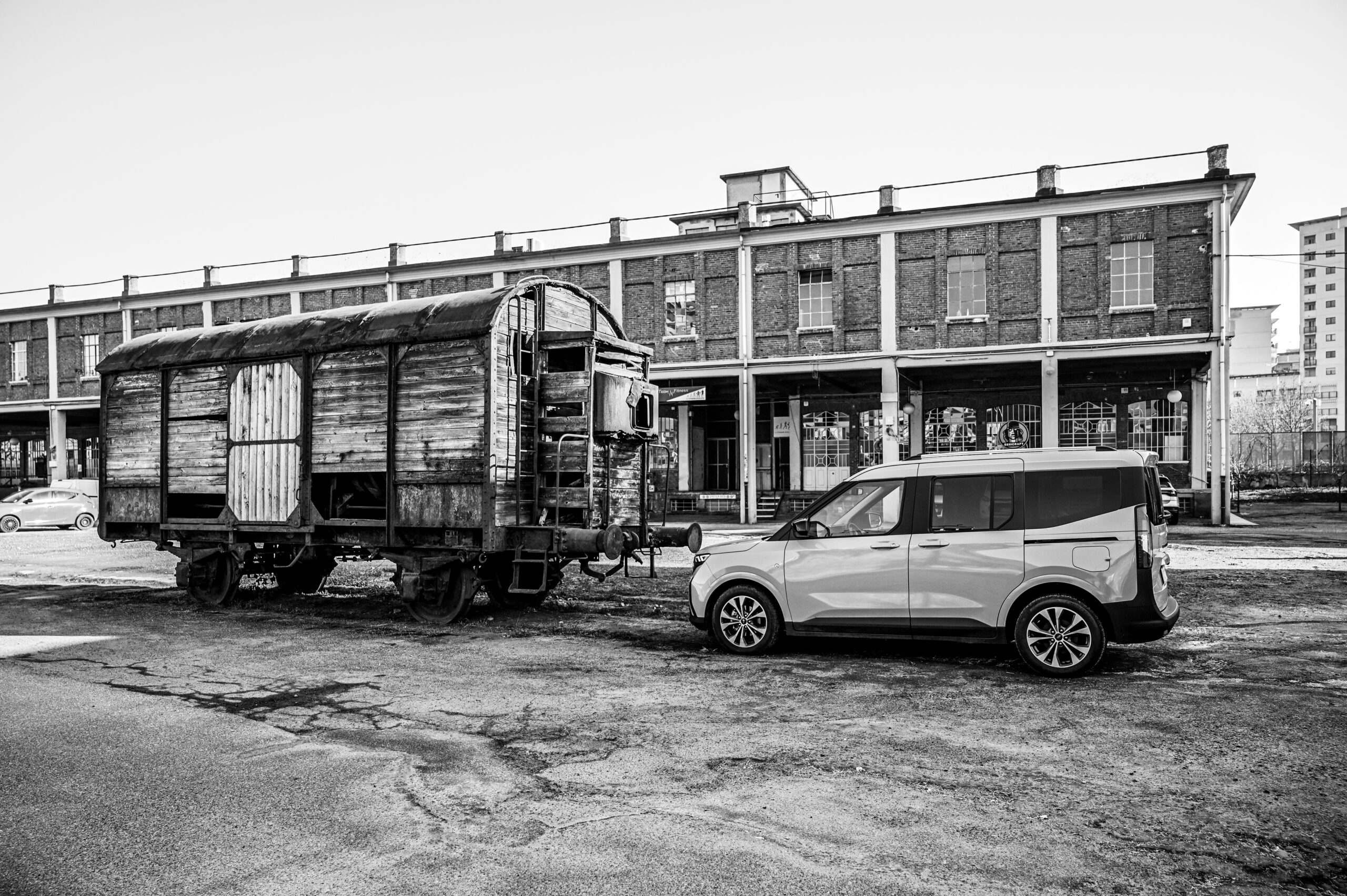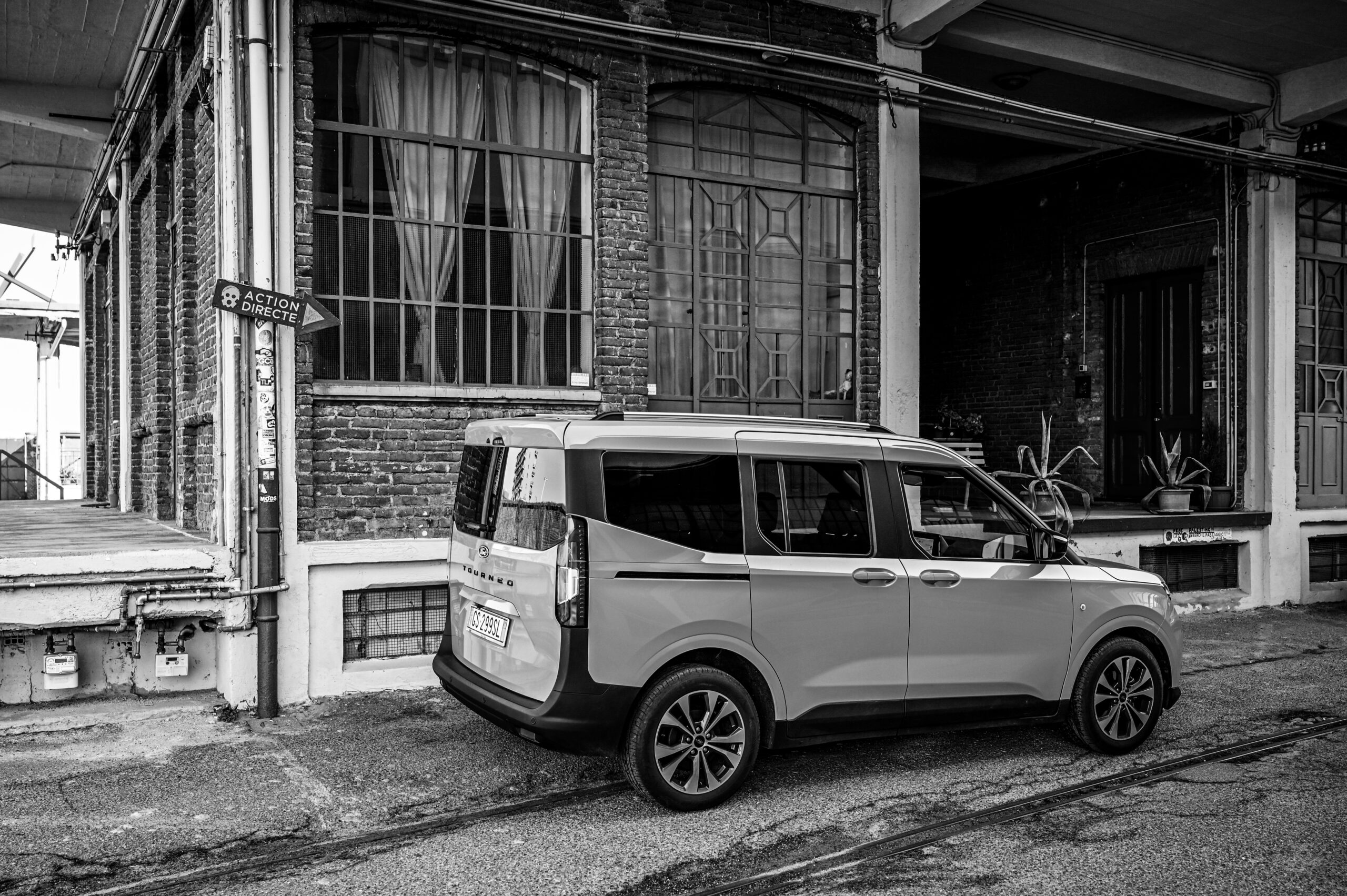 Le linee decise del Tourneo si specchiano nelle geometrie rigide delle finestre a griglia e nelle travi d’acciaio che un tempo sorreggevano la fatica del lavoro. Qui, tra dettagli architettonici carichi di storia, il Tourneo rivela la sua essenza: robusto, funzionale, pronto a interpretare le esigenze moderne senza rinunciare a un carattere distintivo.