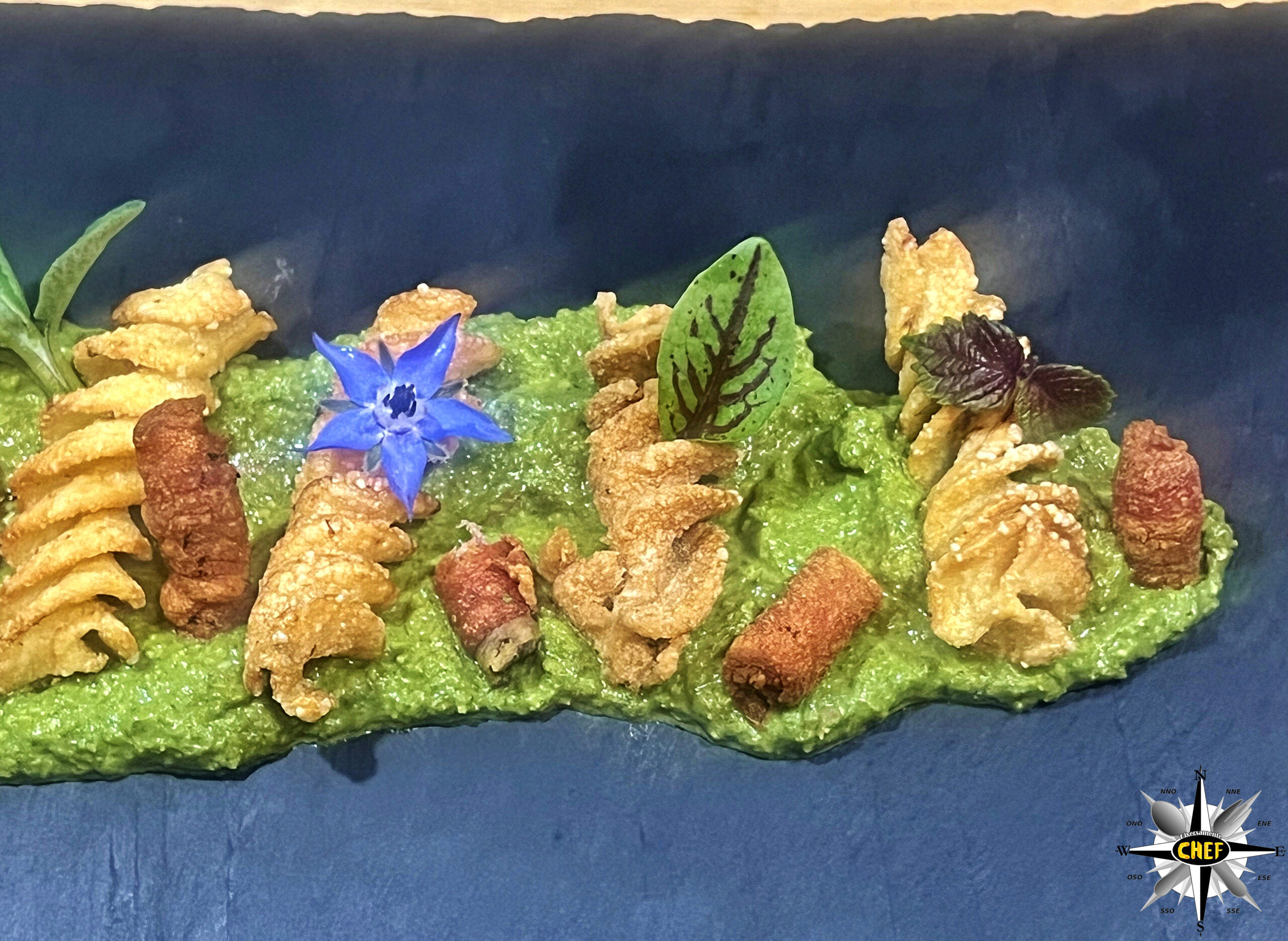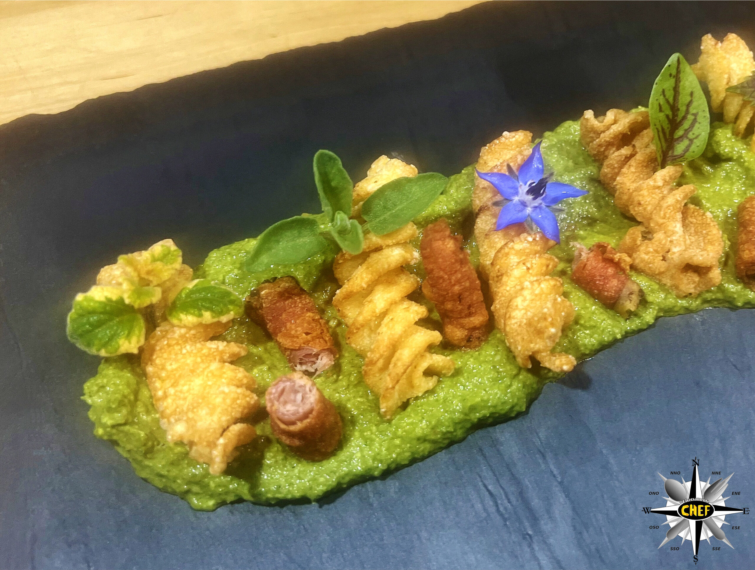 Naturalmente anche nella nostra rubrica Diversamente C.H.E.F. abbiamo affrontato in diverse occasioni la sfida di creare nuove e insolite declinazioni del pesto, con ben 20 ricette: dal pesto ai fiori di salvia al pesto di rosa, dal pesto di menta al pesto di pistacchi di Bronte, dal pesto di finocchietto selvatico al pesto di capesante e spinacino, dal pesto di capperi di Linosa al pesto di okra dal pesto di acetosa venata rossa al pesto di pisellini e scalogno, dal pesto di rucola e mandorle al pesto di salicornia, dal pesto di chayote al pesto taggiasco al succo di arancia, dal pesto di tarassaco al pesto di valeriana, dal pesto di cavolo nero al pesto di cactus, dal pesto di origano cubano alla ricetta di oggi.