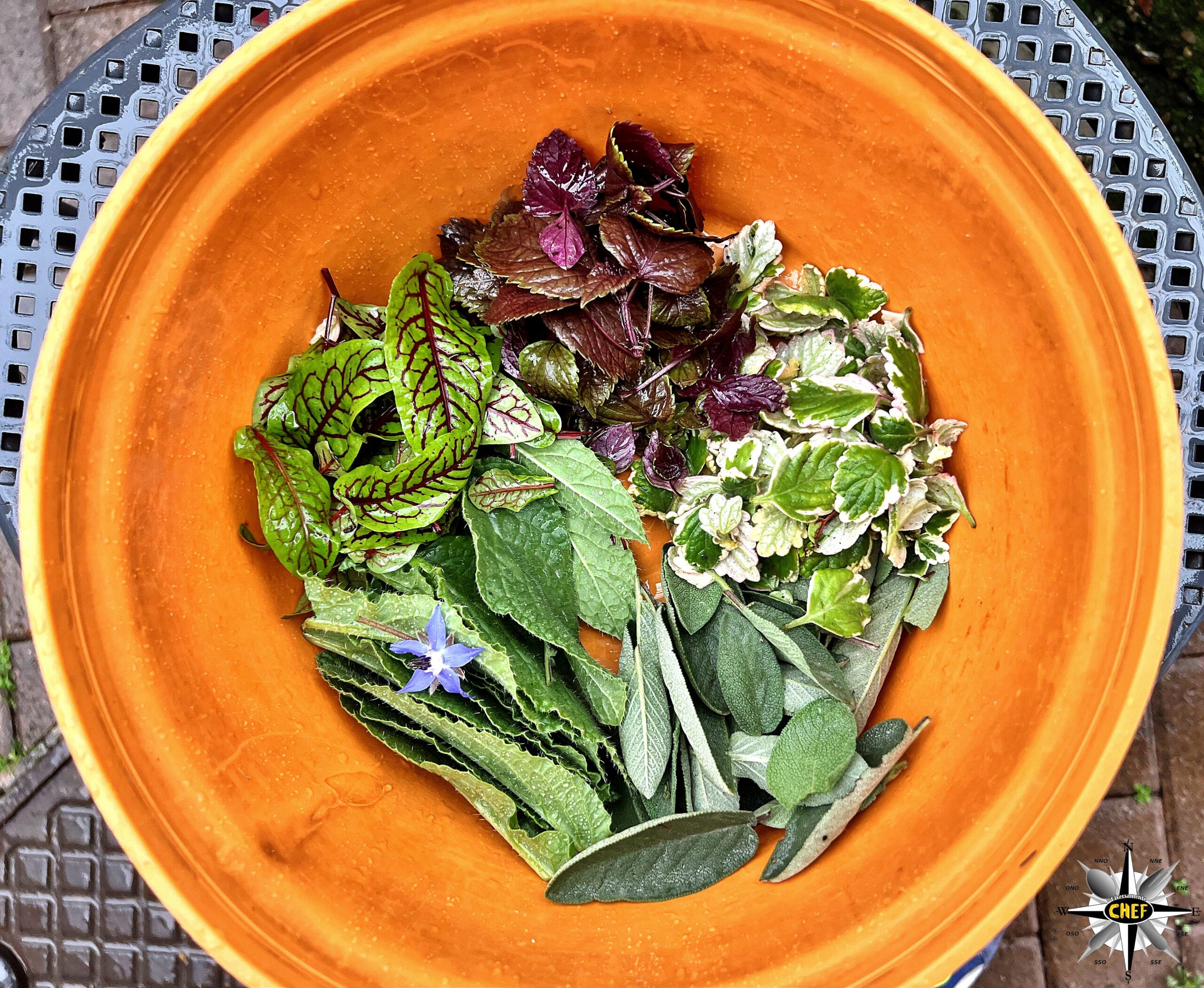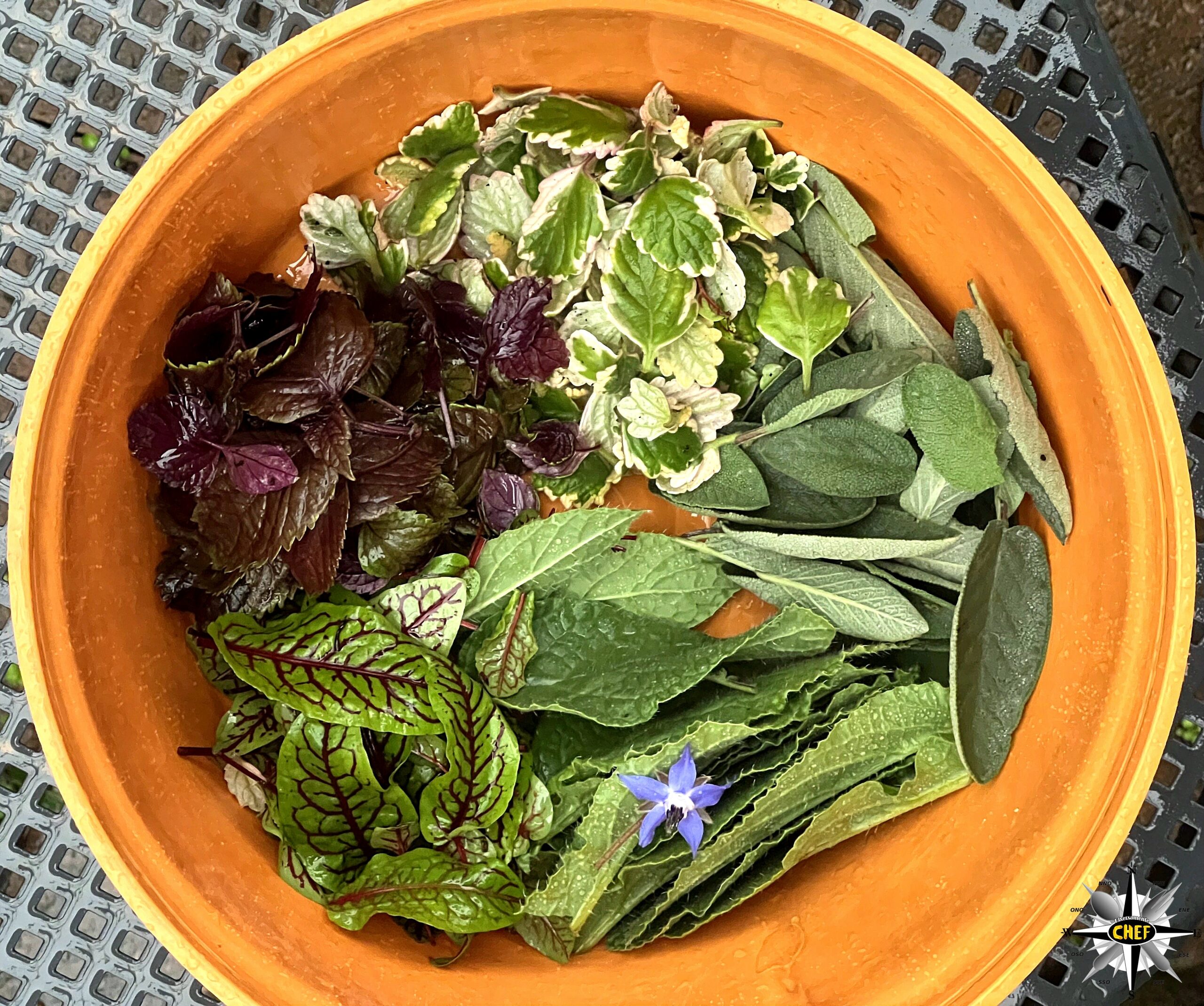 Per i nostri “Fusilloni soffiati con pesto alle 5 foglie e riccioli di Speck Alto Adige IGP” abbiamo utilizzato le foglie di Borragine, Vene Cress, Shiso Purple, Incenso e Salvia, tutte ovviamente provenienti dal nostro orto.