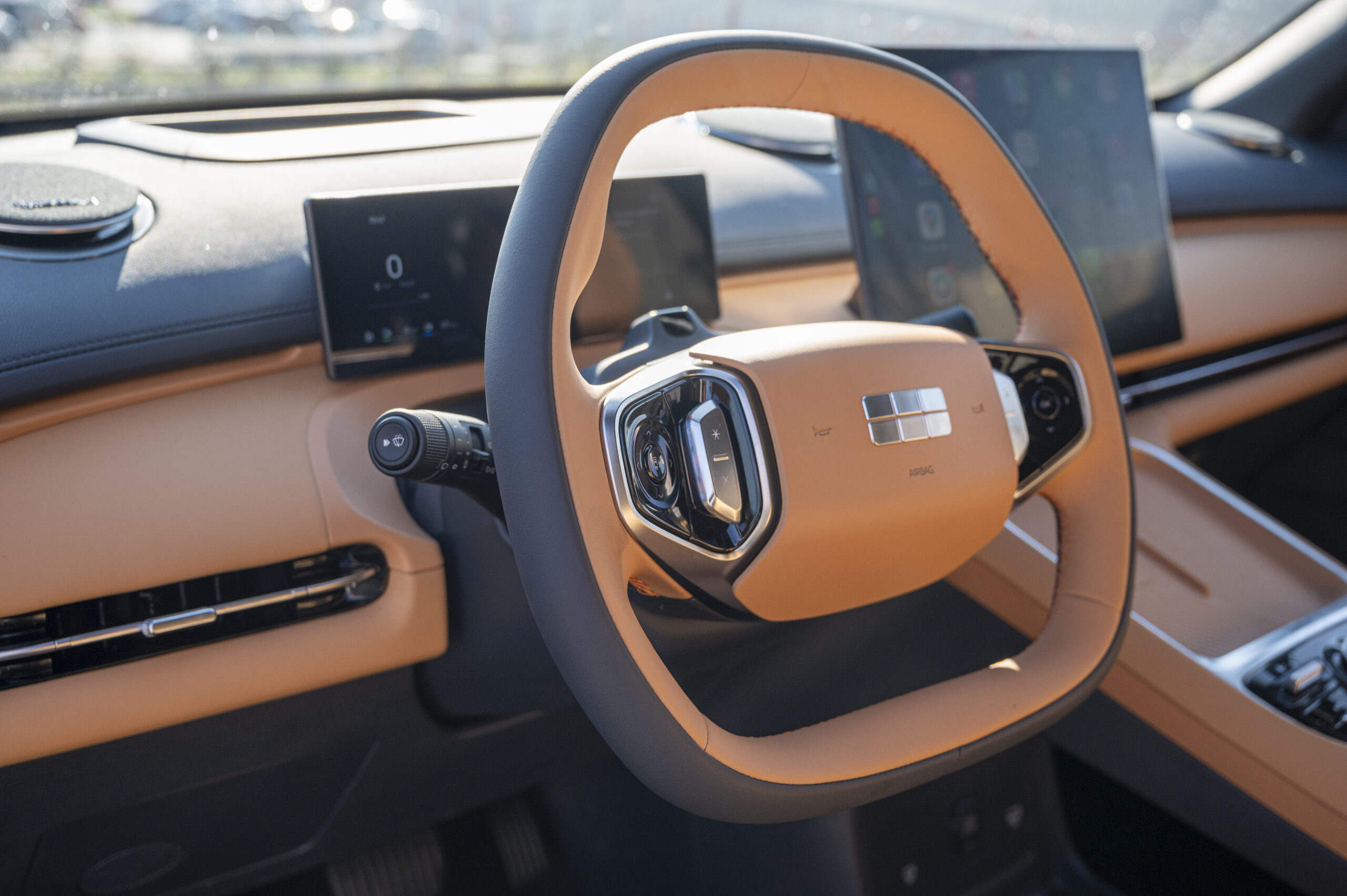 La parte ibrida plug-in del sistema EM-H lavora in modo sorprendentemente armonioso. Nel nostro percorso misto, il passaggio tra motore termico ed elettrico è risultato quasi impercettibile, con un cambio automatico molto fluido che contribuisce a un’esperienza di guida “morbida”, coerente con la filosofia del modello.