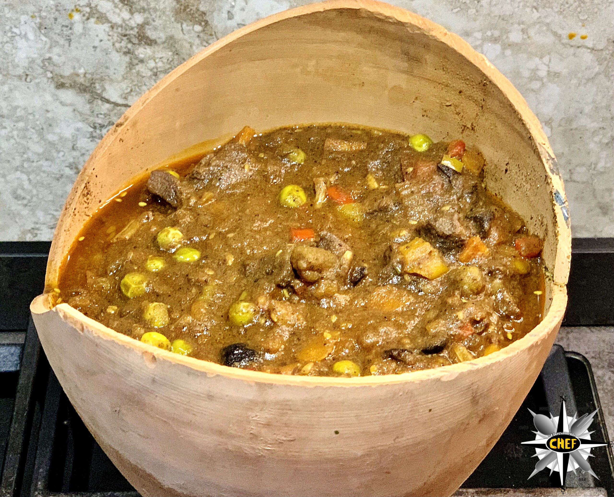 Completata la marinatura (i cui tempi ovviamente non rientrano in quelli della preparazione) versare la carne (con la birra) e tutti gli altri ingredienti (spezie, verdure e condimenti) nell’anfora di terracotta che va inserita nella pentola prima che l’acqua raggiunge l’ebollizione.