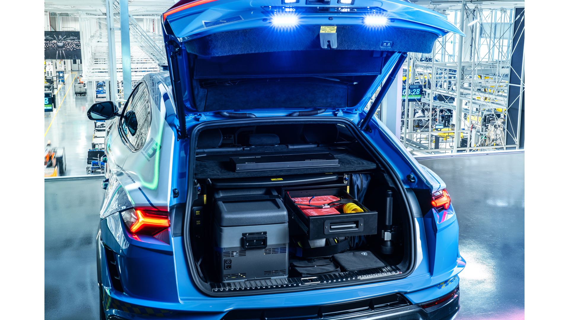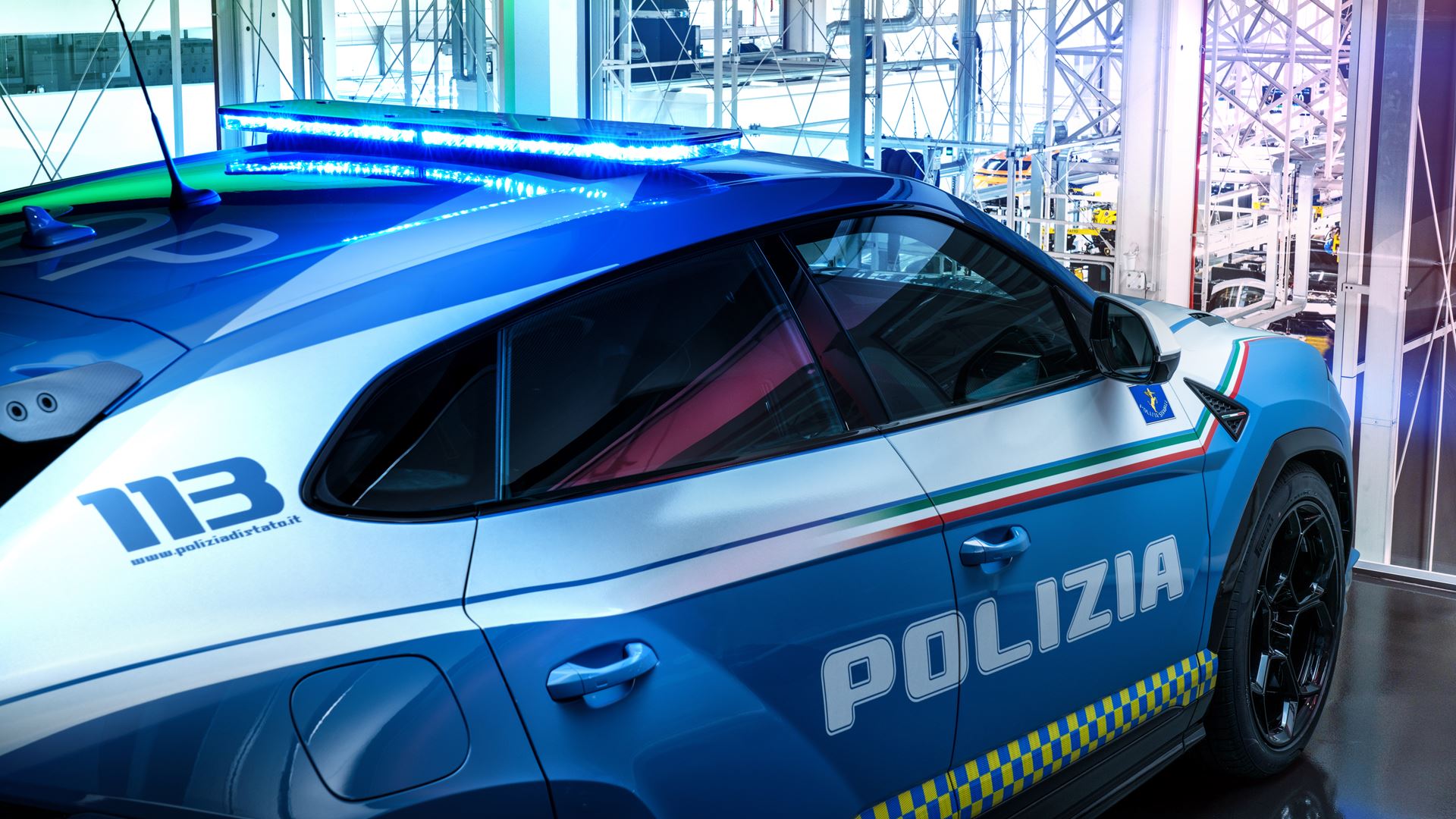 Urus Performante è stata allestita dai tecnici Lamborghini a Sant’Agata Bolognese, a partire dagli esterni, seguendo le specifiche della Polizia. La livrea è stata disegnata dal Centro Stile Lamborghini e combina il classico “Azzurro Polizia di Stato” al bianco con le fasce tricolori sui brancardi e sulla linea di cintura. Sulle portiere sono stati applicati i loghi della Polizia in pellicola riflettente, mentre sul tetto è stata installata una barra luminosa con luci Led blu a 360°, combinata con una sirena elettrica bitonale.
