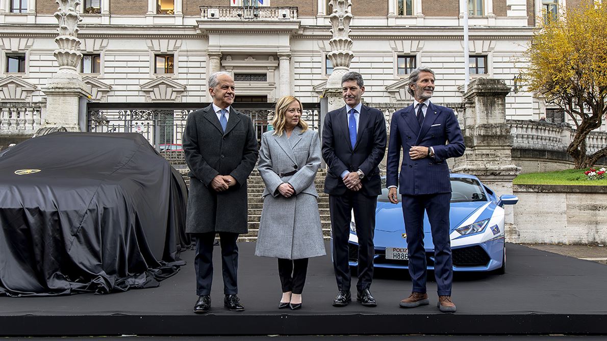 Prosegue la proficua collaborazione tra Automobili Lamborghini e la Polizia di Stato, che dura da quasi 20 anni. Stavolta l’azienda di Sant’Agata Bolognese ha consegnato alla Polizia Stradale una Urus Performante[1] che entrerà in servizio a partire dal 2024. La cerimonia si è svolta a Roma oggi, martedì 12 dicembre, in piazza del Viminale, sede del Ministero dell’Interno, dove Stephan Winkelmann, Chairman e CEO di Automobili Lamborghini, ha consegnato le chiavi della vettura al Ministro dell’Interno Matteo Piantedosi e al Capo della Polizia e Direttore Generale della Pubblica Sicurezza Vittorio Pisani.