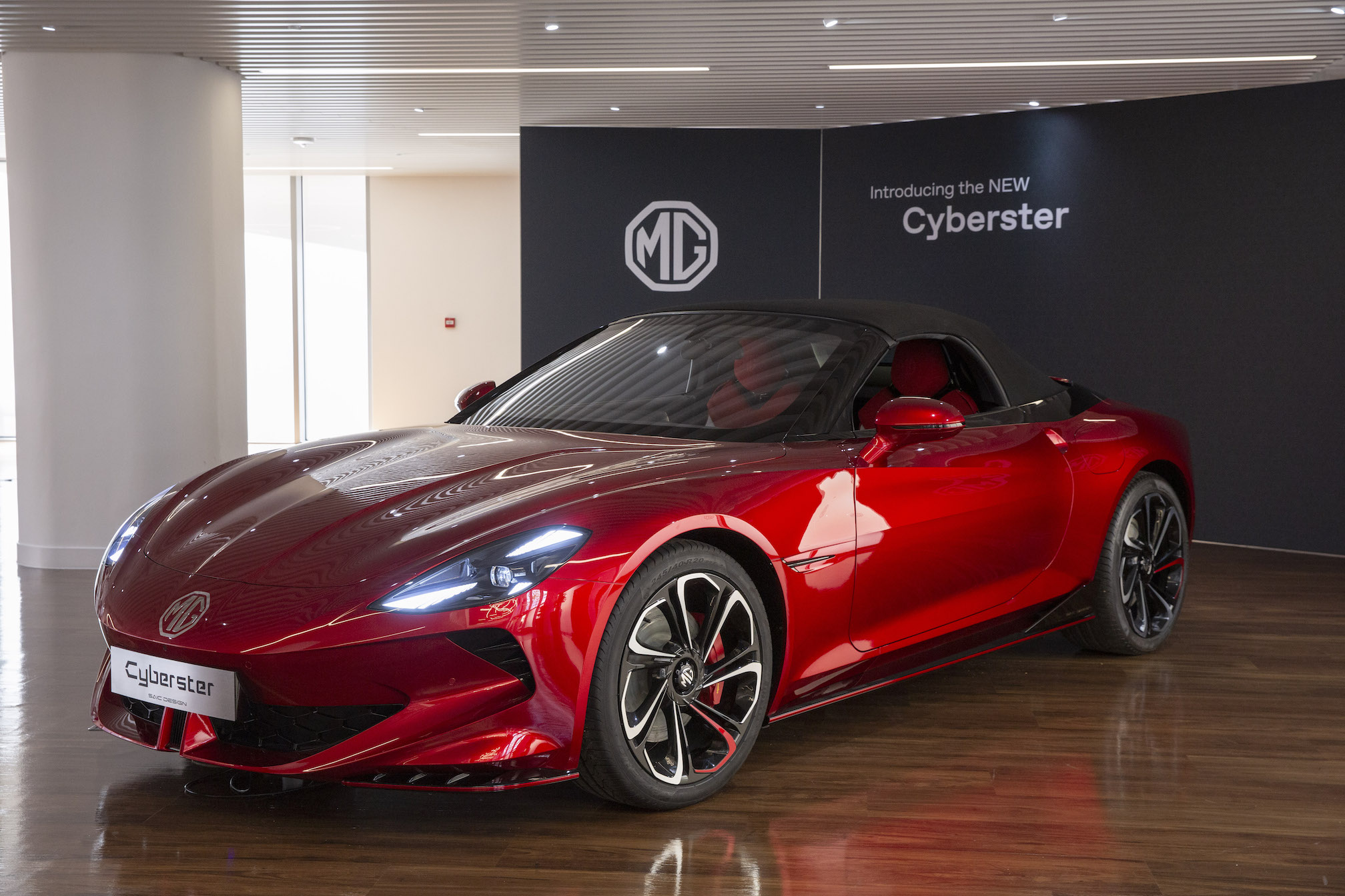 La Cyberster ha fatto la sua prima apparizione a Londra, esposta nello showroom della sede di MG Motor UK a Marylebone, Un modello di pre-produzione che incarna il ritorno di MG alla progettazione di auto sportive. Il direttore del SAIC Design Advanced London Carl Gotham e il suo team di Marylebone, che ha svolto un ruolo chiave nella creazione della Cyberster, hanno svelato il modello per la prima volta.