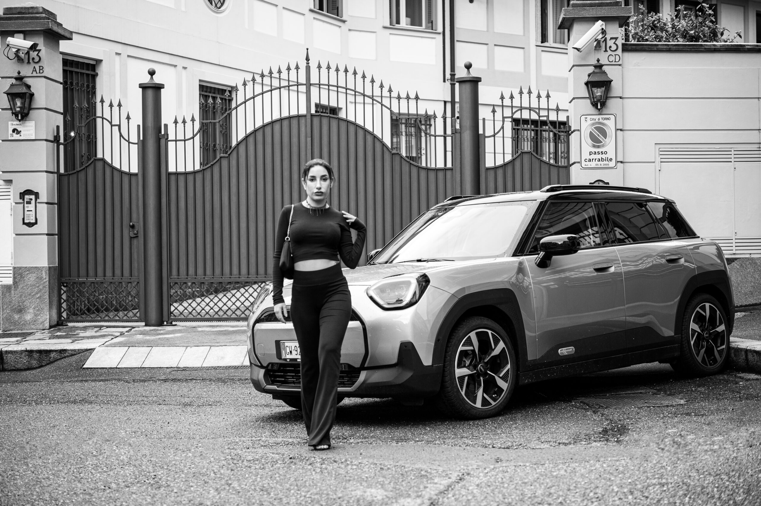 Ogni scatto diventa narrazione urbana: il parcheggio sotterraneo diventa palcoscenico, la piazza si trasforma in passerella, il quartiere è un set vivo. La MINI Aceman non accompagna: sottolinea. Non segue: apre la strada. A passo deciso, come chi sa dove sta andando.
