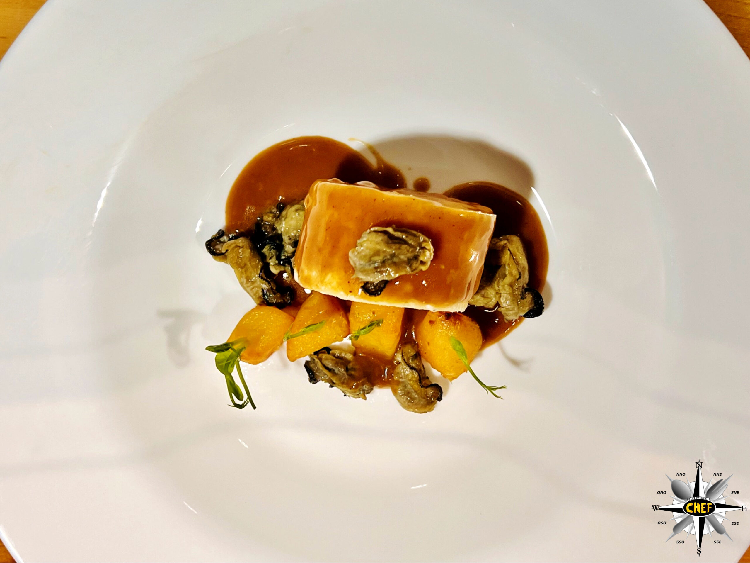 Home Diversamente C.H.E.F. 63 mesi di Parmigiano con riduzione di vino cotto, ostriche e cubotti...