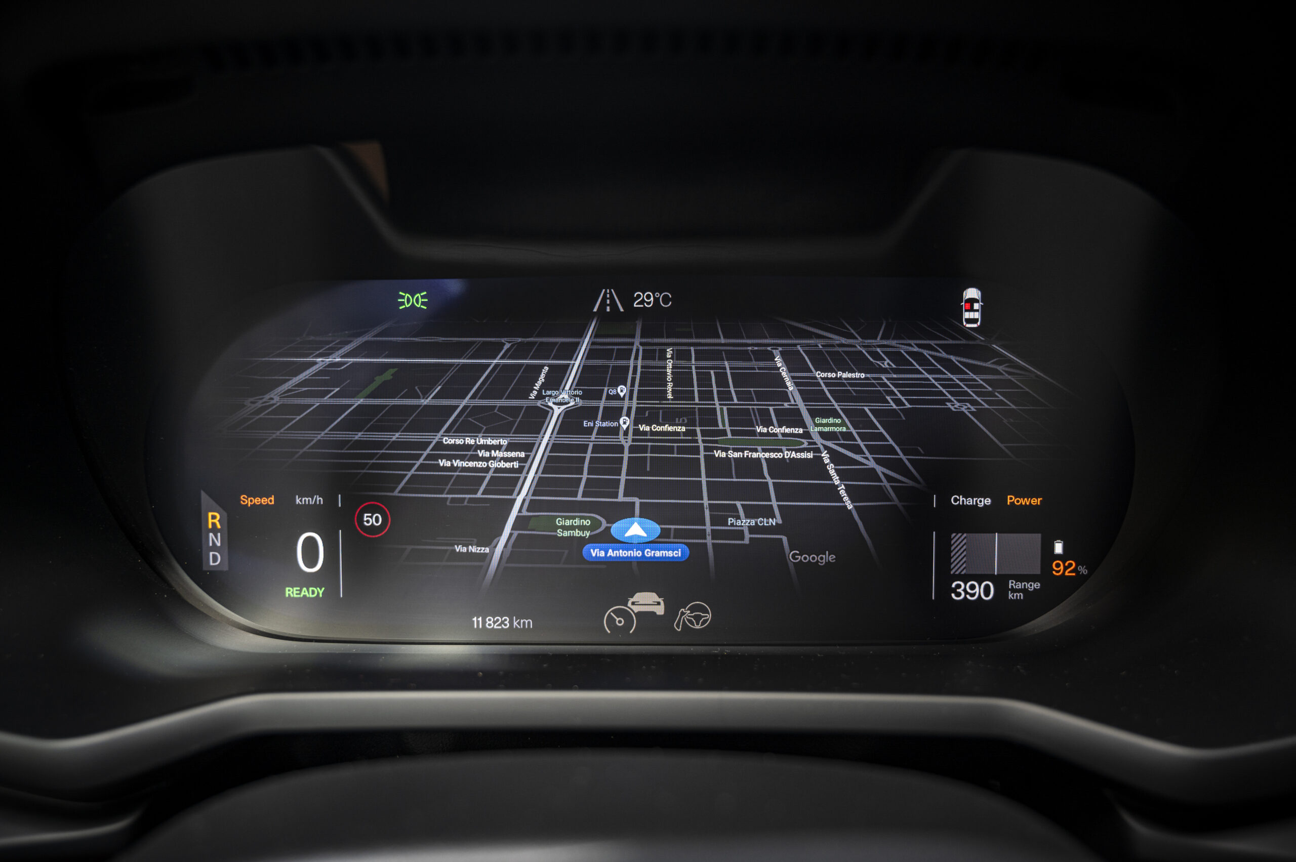 Si accende da sola appena sali a bordo, e per iniziare basta posizionare la leva del cambio sulla consolle centrale in posizione “D o R”; l’impressione di qualità resta nettamente superiore a quella di una Tesla Model 3.