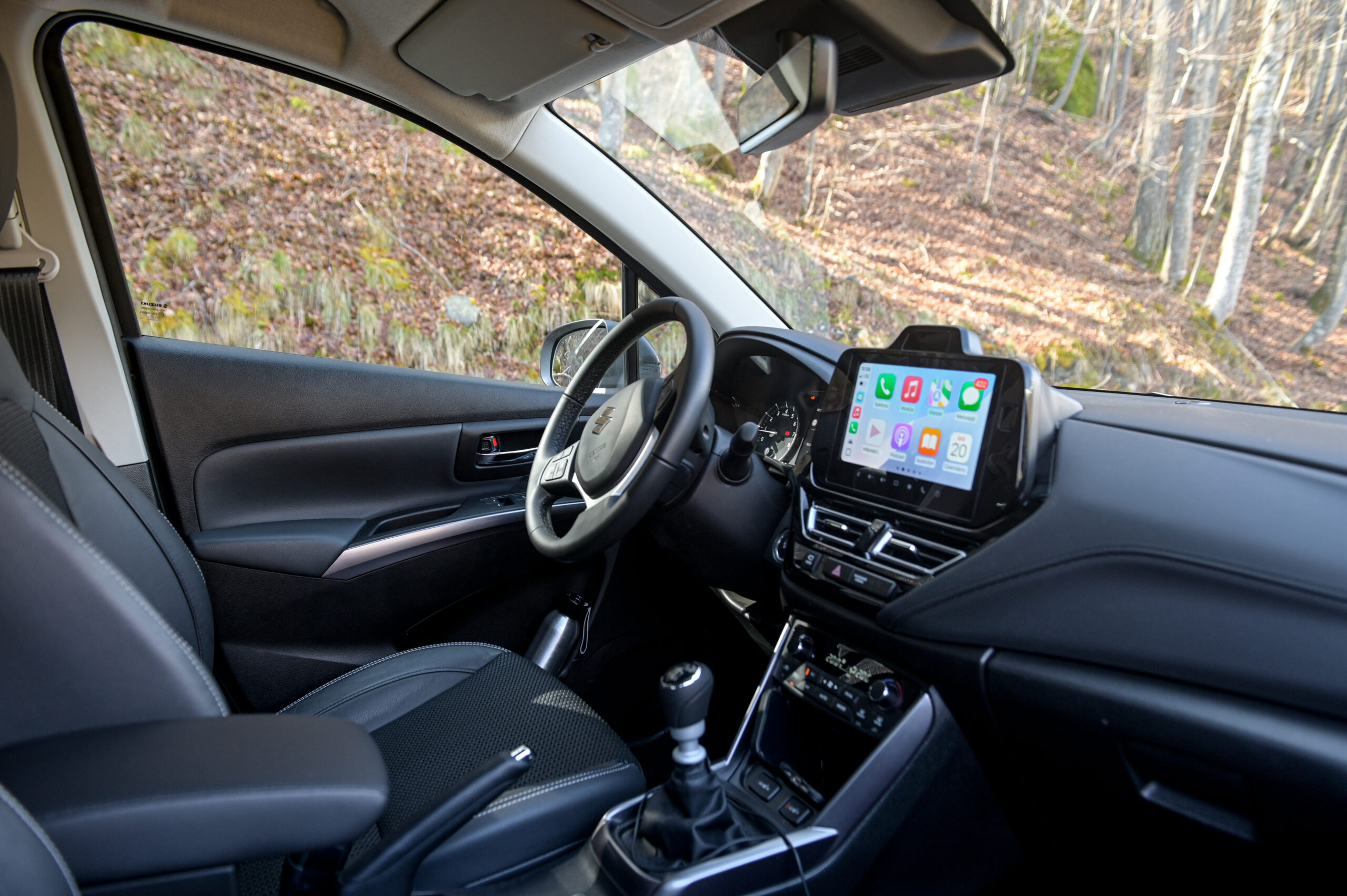 All’interno, la S-Cross mantiene un approccio essenziale, ma di qualità. L’ambiente è luminoso e spazioso, con plastiche solide, sedili comodi, climatizzatore automatico bizona e tutti i comandi dove te li aspetti. Il piacere di riscoprire il freno a mano manuale e un quadro strumenti analogico con le lancette riporta piacevolmente a un’epoca in cui le auto si guidavano davvero, senza dover imparare ogni volta un nuovo sistema operativo.