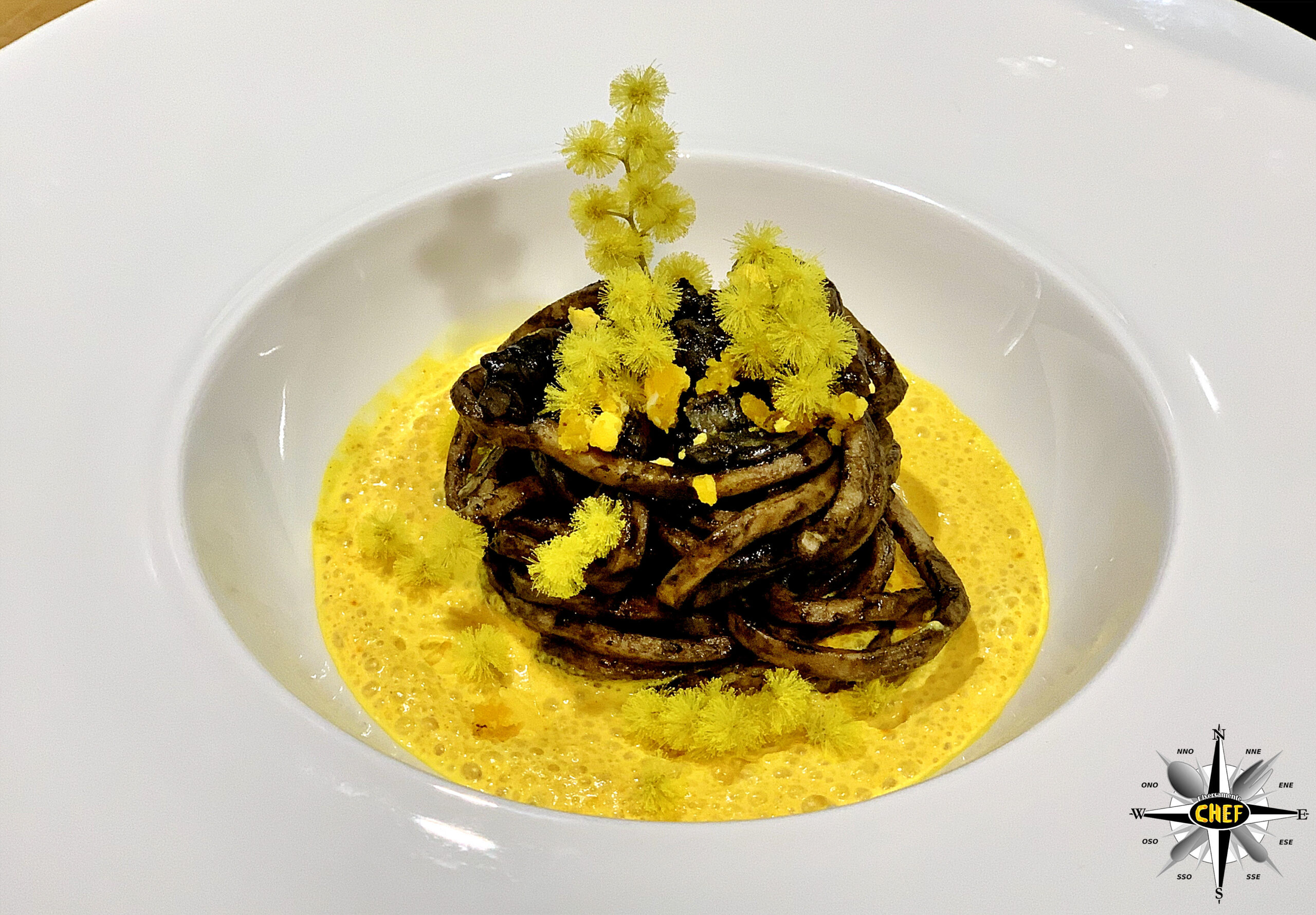Ma la mimosa ha anche un’altra importante peculiarità, molto apprezzata dagli Chef, in quanto di tratta di una pianta dai fiori edibili e la ricetta “Tonnarelli di carruba su bolle di Burrata di Andria IGP ai fiori di mimosa” vuole rendere omaggio a tutte le donne con un piatto nel quale l’elemento frontman è rappresentato proprio dai fiori di mimosa.