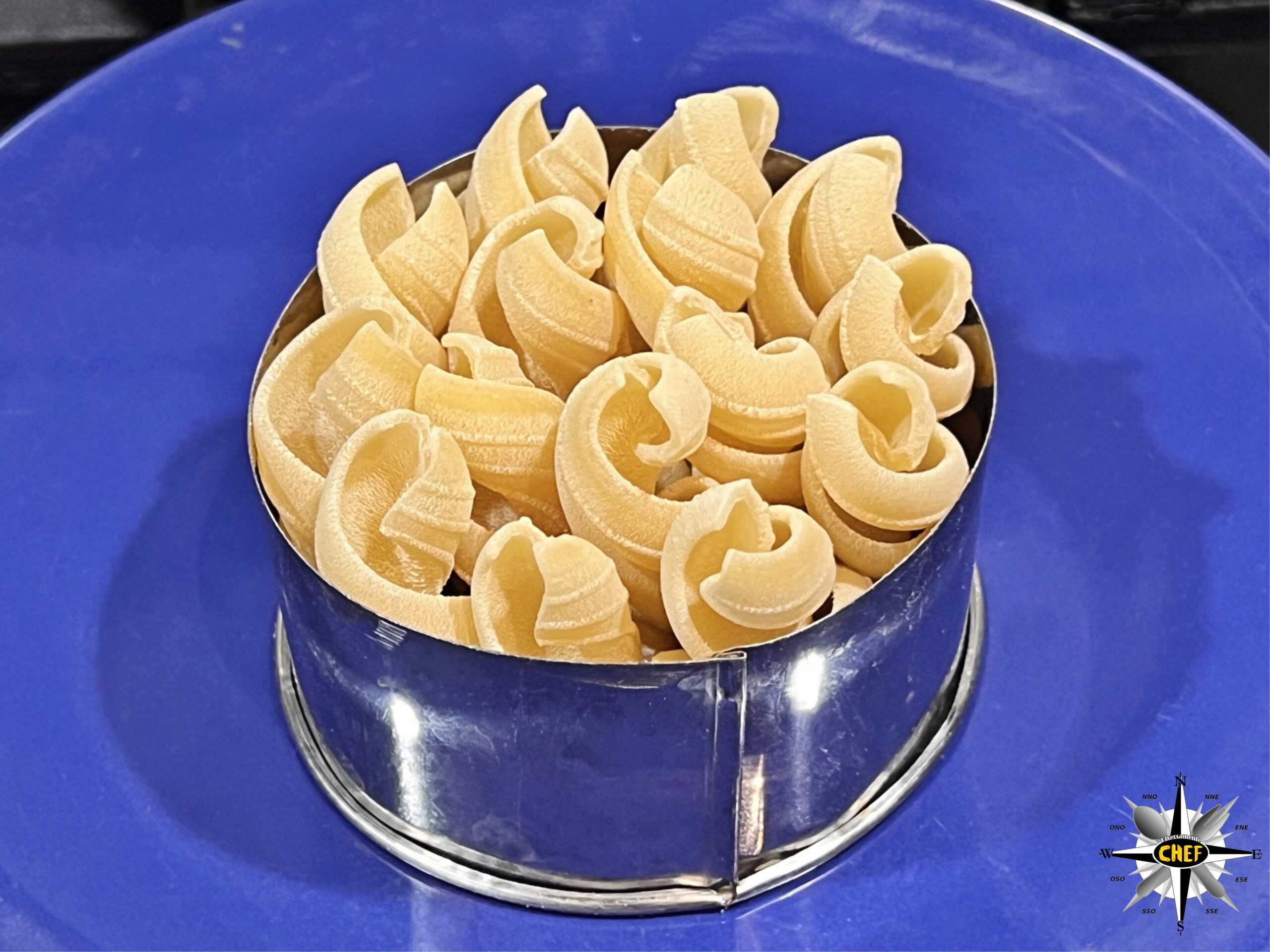 Man mano che la pasta cuoce assorbirà l’alga assumendone il colore, che dal blu vira lentamente verso una dominante verdastra tipo acqua marina.