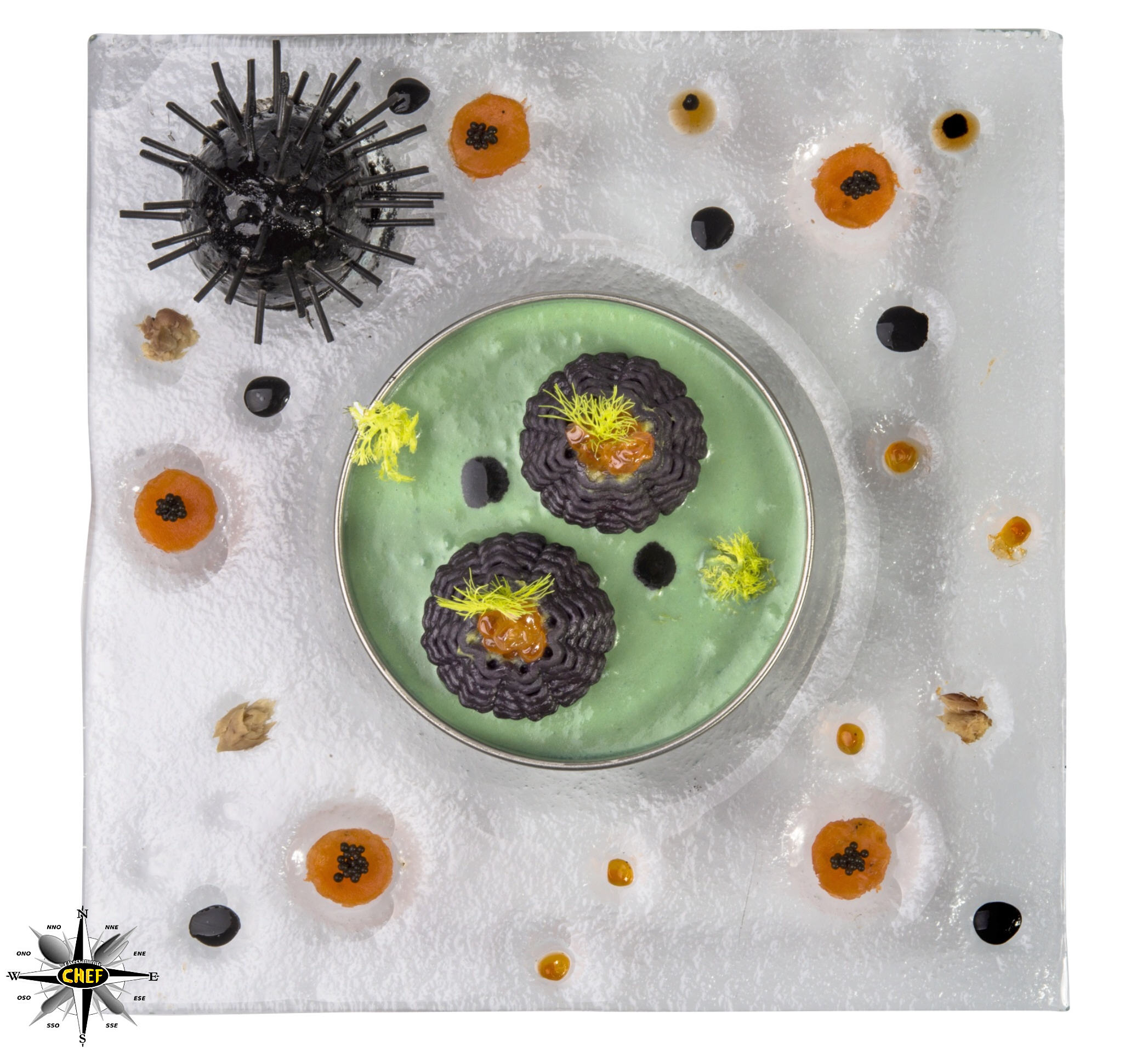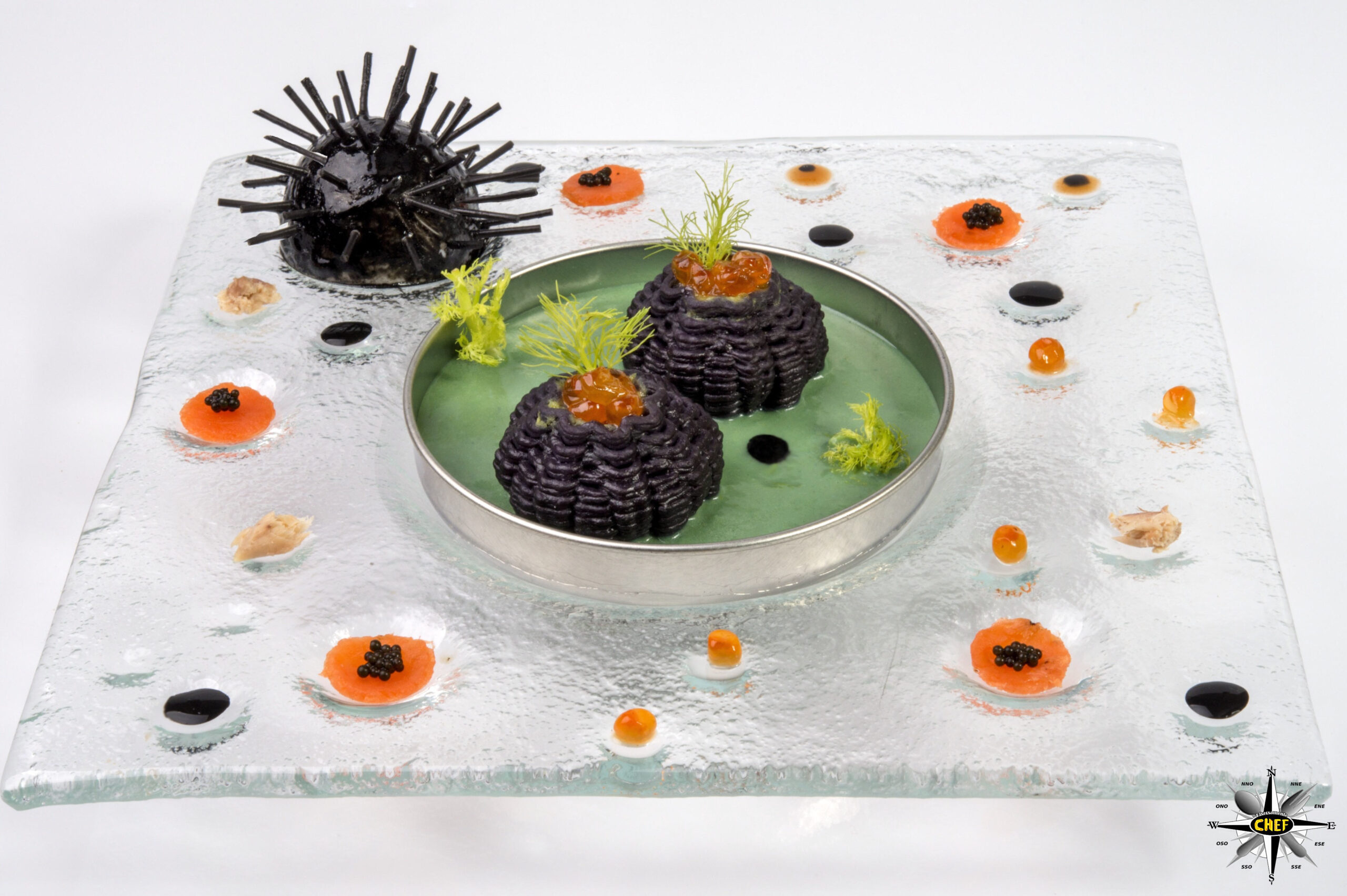 Ad accompagnare i “Sea Urchin” verso le vette più alte del gusto troviamo inoltre una sinfonia di aromi esclusivi a base di bisque di astice ed altre essenze di mare (salmone selvaggio, caviale e lattume di tonno) inserite nelle lagune di vetro sparse sulla superficie del piatto.