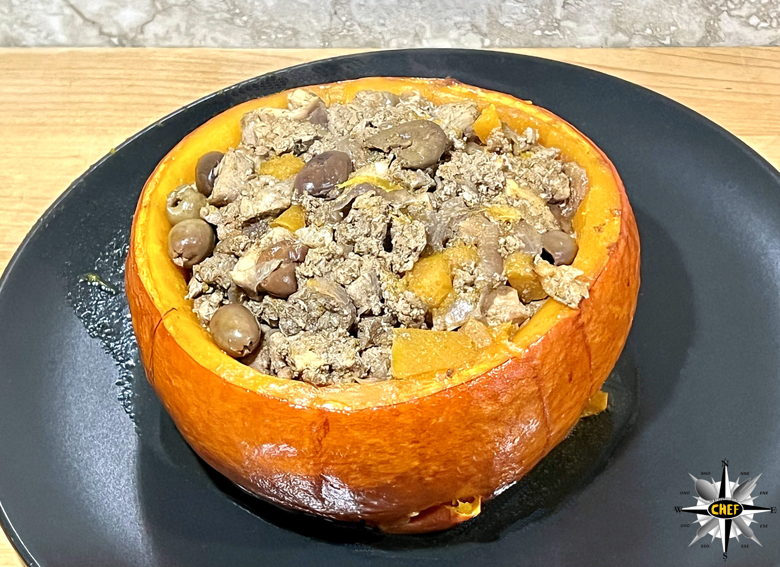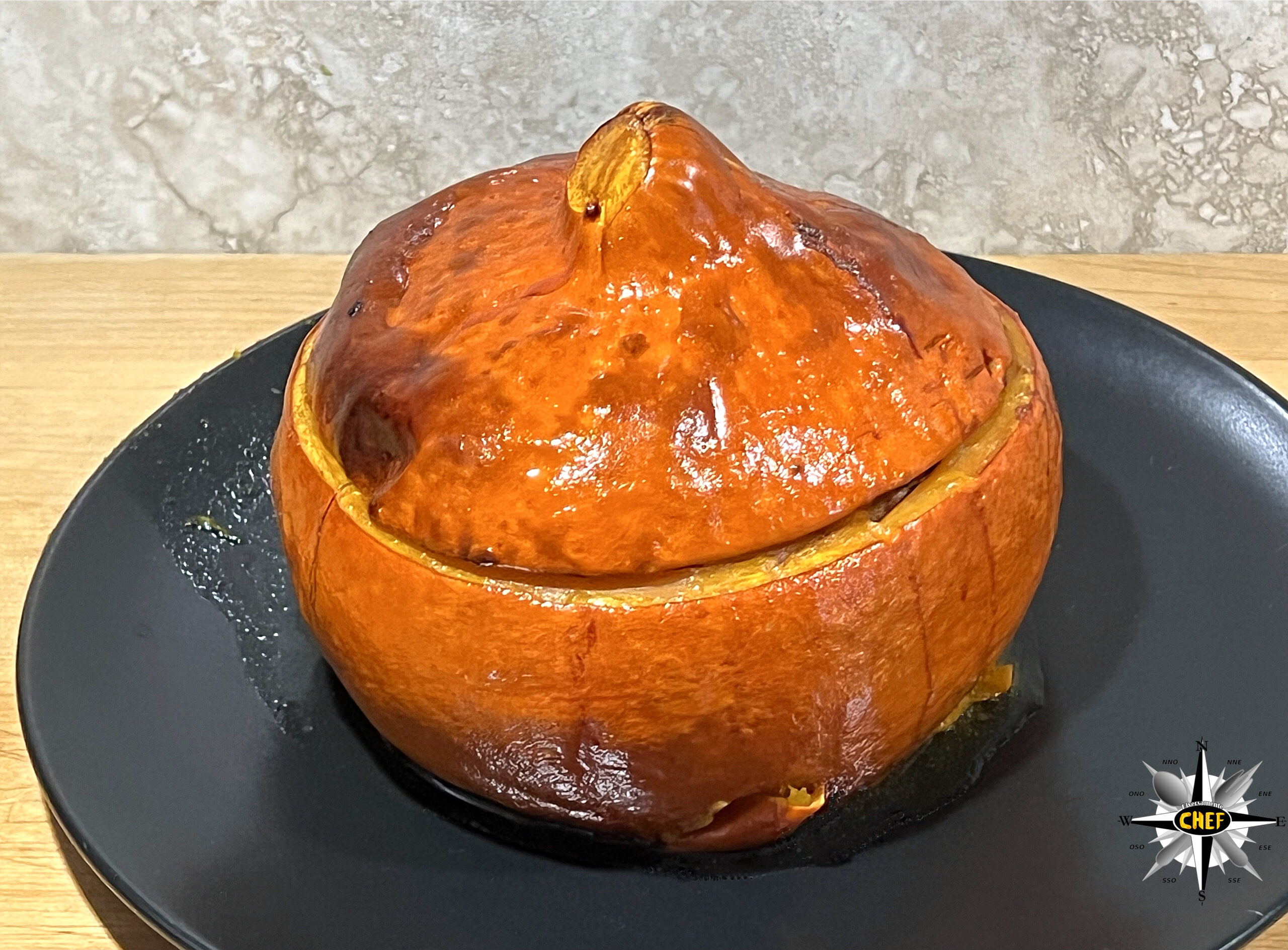 Per la nostra “Zucca Hokkaido con stufato di tritato di Fassona e braciola di maiale” abbiamo trasformato la zucca Hokkaido in un involucro per accogliere un gustoso stufato di tritata di Fassona, braciola di maiale e salsiccia di Bra, marinato in birra rossa a doppio malto e aromatizzato con un assortito mix di spezie (miscelate in salsa di soia e salsa teriyaki) a base di curry, garam masala, cardamomo e sesamo nero.